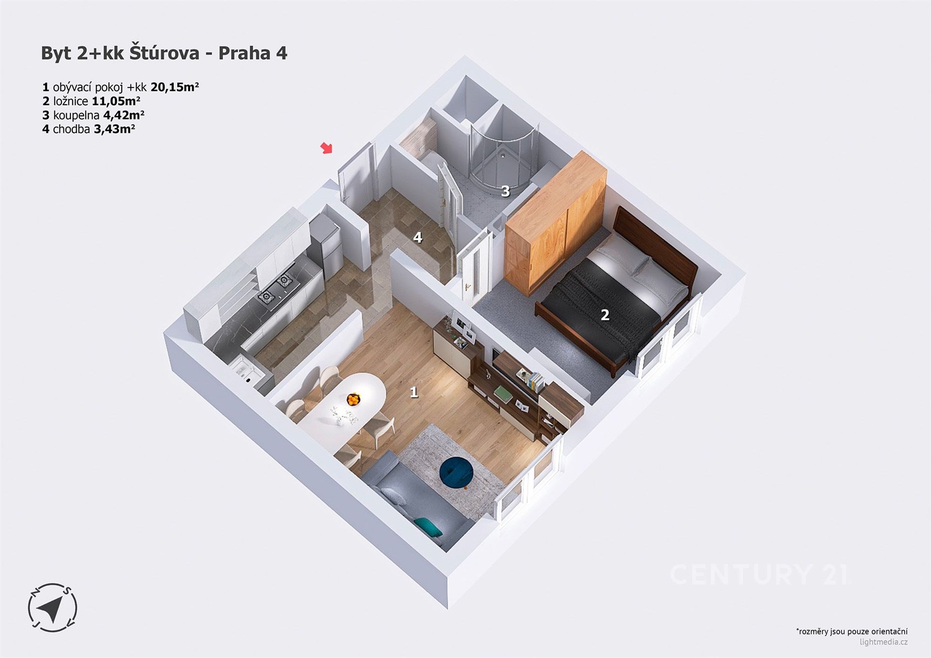 Nabízíme k prodeji útulný byt o dispozici 2+kk, který se nachází v devátém nadzemním podlaží domu v Praze 4 – Krči, v ulici Štúrova. Byt je plně vybavený, součástí je kuchyňská linka se všemi potřebnými spotřebiči, takže nevyžaduje žádné další investice a je připraven k okamžitému nastěhování. Velkou předností bytu je jeho poloha ve vyšším patře, která zajišťuje krásný výhled z obou pokojů. K dispozici je také možnost pronájmu parkovacího stání na hlídaném parkovišti ve vnitrobloku za poplatek. V okolí domu je navíck dispozici veřejné bezplatné parkování. Samotný dům prošel v roce 2020 rozsáhlou rekonstrukcí, která zahrnovala kompletní zateplení fasády, podlah i stropů lodžií, instalaci nové střechy, plastových oken, výměnu stoupacích vedení, montáž nových výtahů a zajištění bezpečnosti díky kamerovému systému, čipovému vstupu a recepci v přízemí. Fasáda byla navíc opatřena antigraffiti ochranou a sklepní okna bezpečnostními fóliemi. Lokalita je velmi dobře dopravně dostupná. Přímo u domu se nachází autobusová zastávka, odkud se na stanici metra C – Kačerov dostanete pohodlně za šest minut. Významnou přidanou hodnotou do budoucna je také výstavba nové linky metra D. Stanice Nemocnice Krč, která vznikne v bezprostřední blízkosti domu, je součástí prvního úseku plánovaného otevření trasy Pankrác – Nové Dvory, jehož realizace již probíhá. Občanská vybavenost je v této části města na vynikající úrovni. V docházkové vzdálenosti se nachází obchody, restaurace, kavárny, školy a školky, lékárna i pošta. Milovníci přírody ocení blízkost Kunratického lesa a parku Velký háj, které nabízejí dostatek prostoru pro procházky a sportovní aktivity. Zároveň je v těsném sousedství Fakultní Thomayerova nemocnice, která poskytuje kompletní zdravotní péči. Byt na Štúrově ulici tak představuje ideální kombinaci pohodlného bydlení, klidného prostředí s dostatkem zeleně, výborné dopravní dostupnosti a perspektivy do budoucna díky rozvoji metra D. Pokud hledáte bydlení v lokalitě s výbornou občanskou vybaveností, klidným prostředím a zároveň v bezprostřední blízkosti přírody, jste na správném místě. V rámci kompletního realitního servisu pro Vás zajistíme také financování v bance dle Vašeho výběru. Těším se na osobní setkání při prohlídce tohoto bytu.