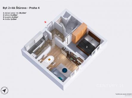 Prodej útulného bytu 2+kk 40 m², Praha Štúrova