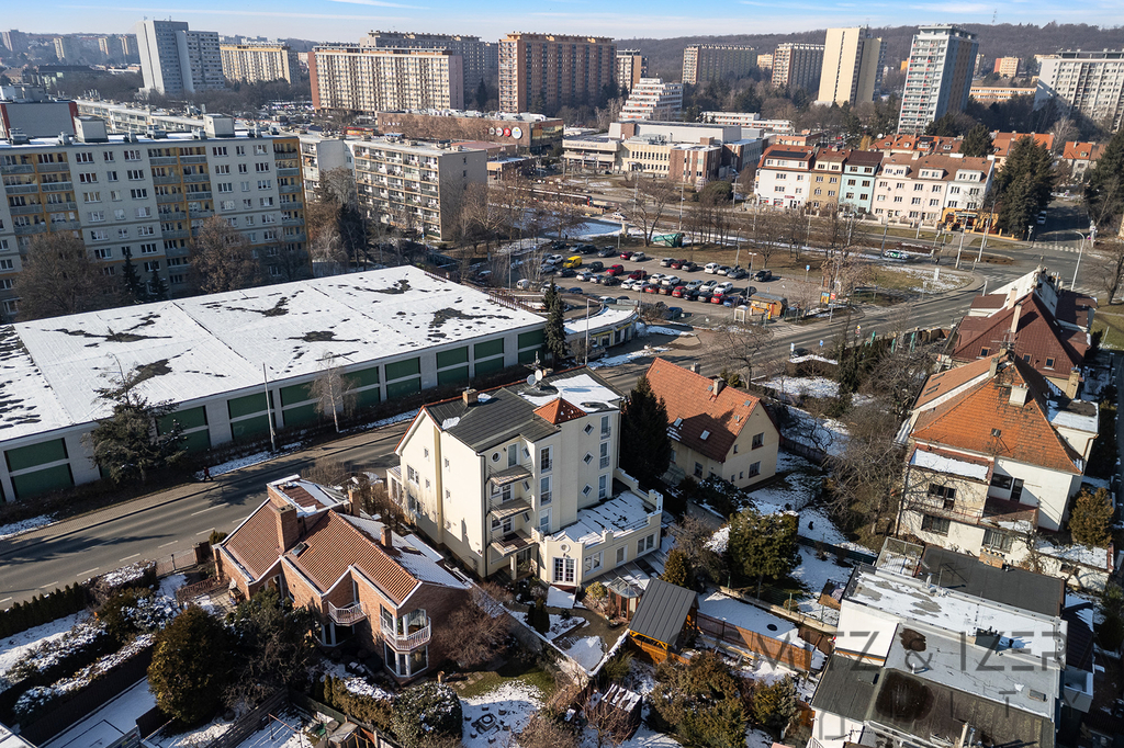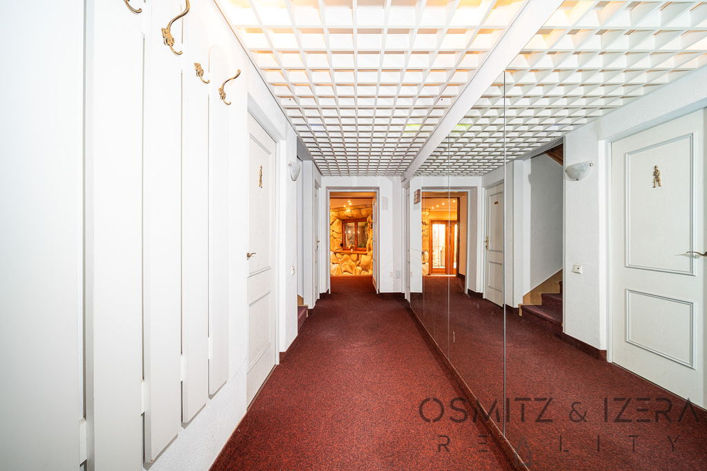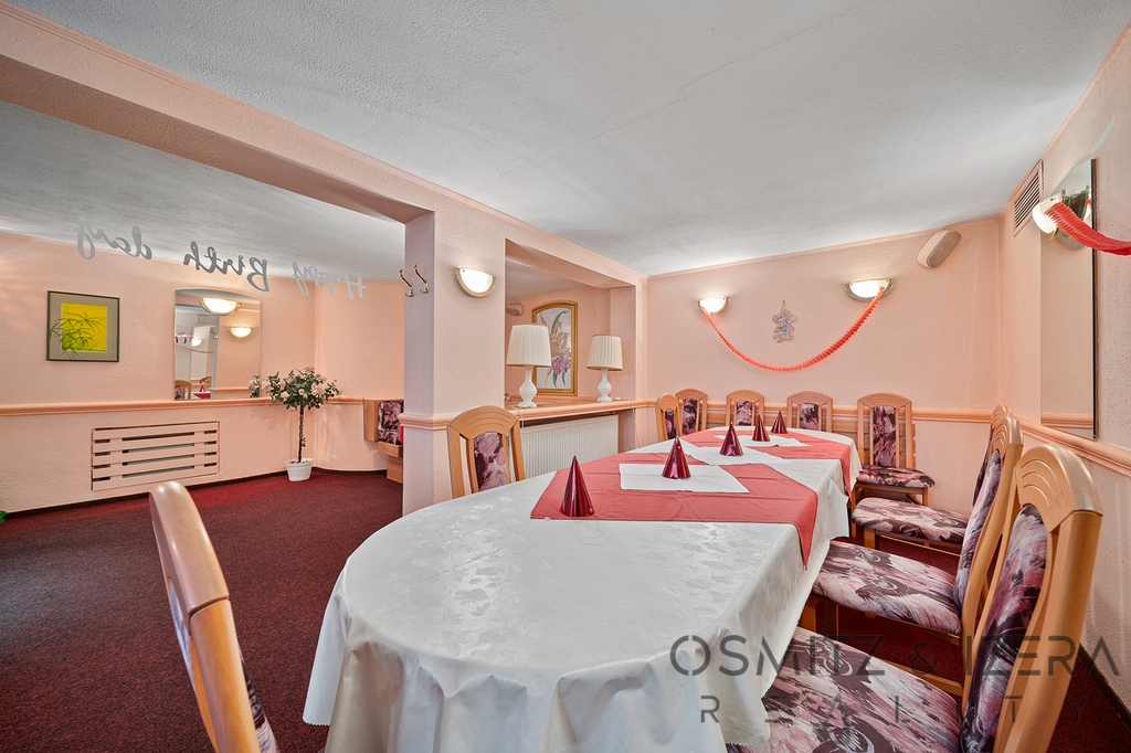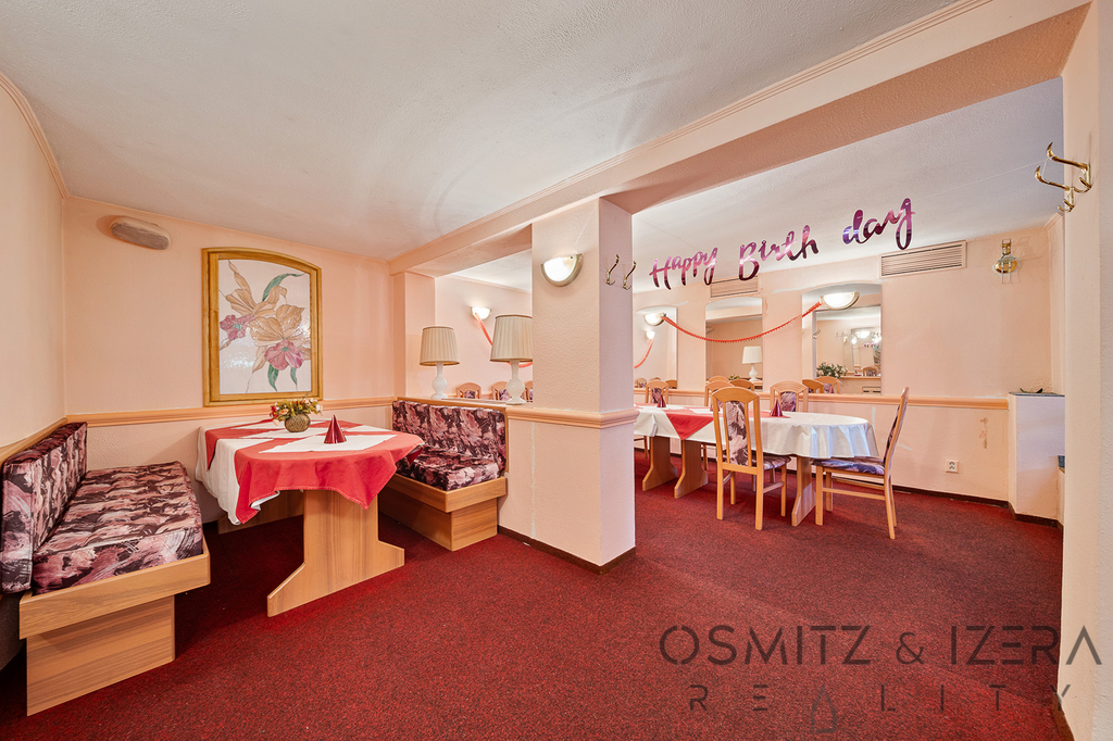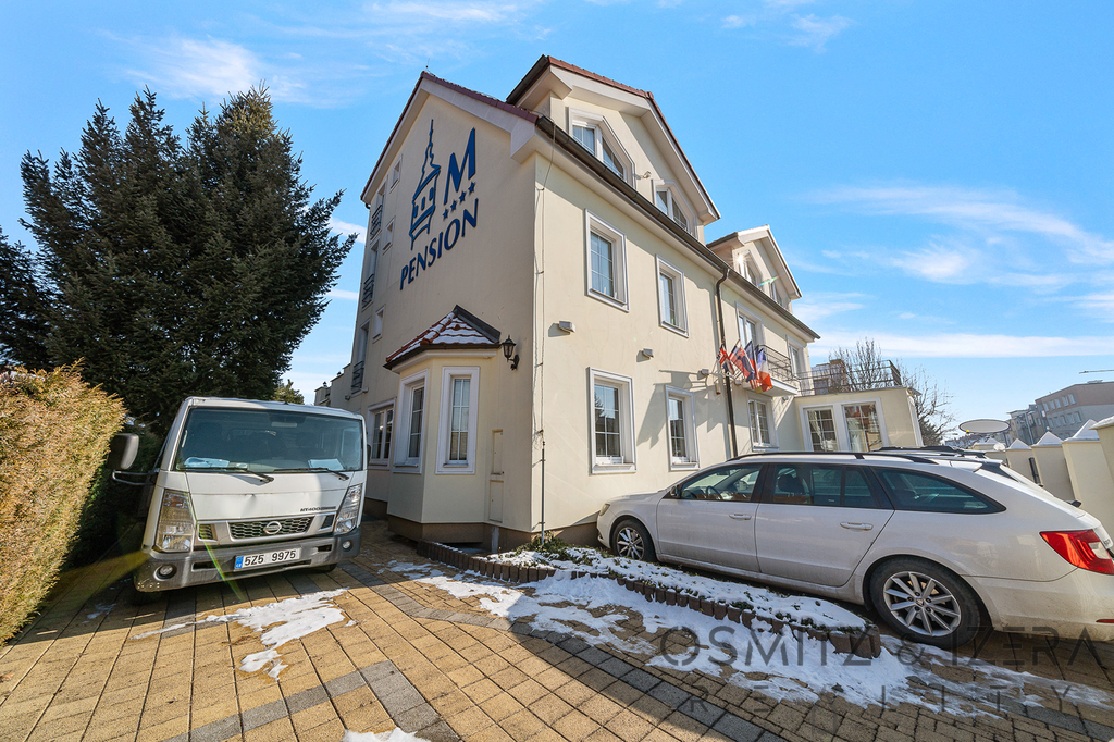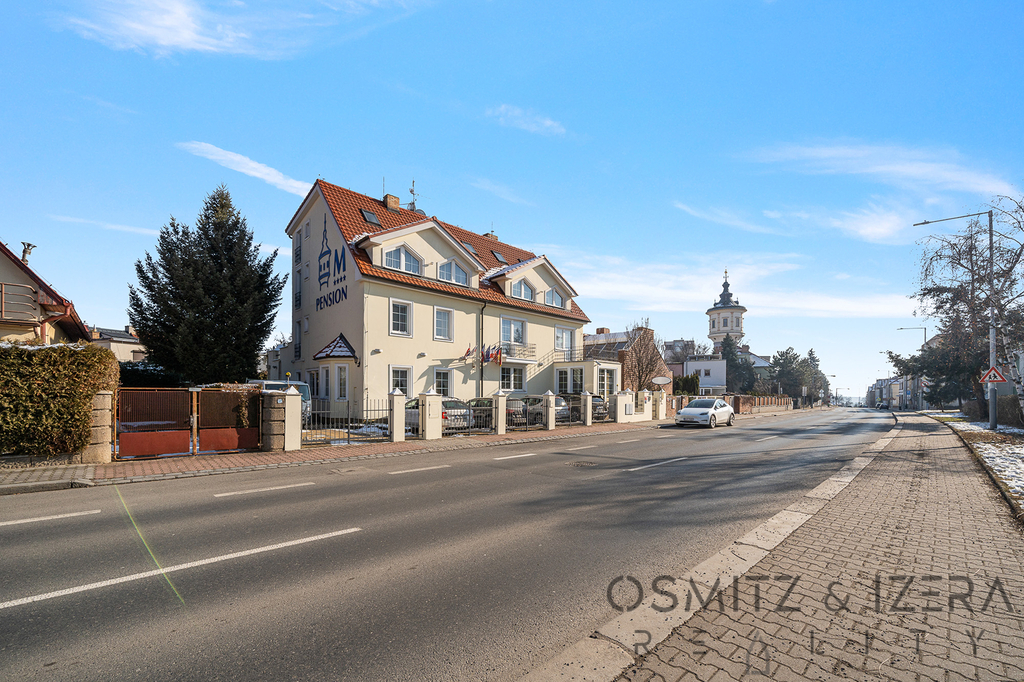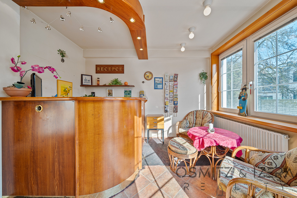 Nabízíme k prodeji prostorný penzion v klidné lokalitě u historické vodárenské věže, jen pár minut pěšky od metra Ládví (linka C). Objekt je zkolaudován a provozován jako penzion. Možno využití ale i jako sídlo firmy nebo pro jiné využití. Při určitých technických úpravách je zde i možnost přestavby části nemovitosti na samostatné bytové jednotky. Skvělá dostupnost autem na městský okruh a MHD (tramvaj, metro, autobus, PID) 3 minuty pěšky od domu. Parametry objektu: • Celková užitná plocha: cca 890 m² • Počet podlaží: 1 suterén + 4 nadzemní podlaží (výtah v domě) • Parkování: 6 parkovacích míst na pozemku u domu • Pozemek cekem 622 m² Dispozice: • Suterén: Společenská místnost s barem, salonek se zimní zahradou s přístupem na zahradu, kancelář, sociální zařízení, kotelna, strojovna výtahu, sklady. Suterén lze využívat jako zázemí pro dům, nelze oficiálně celé užívat jako pobytové místnosti. • Přízemí: Velký byt 4+1 se zimní zahradou + prostor pro další byt 2+kk. • Nadzemní podlaží: 12 pokojů + 1 apartmán, každý s vlastním sociálním zařízením, 5 pokojů s balkónem. • Terasa: Velká letní terasa na východní straně s přístupem z prvního patra. • Zahrada: V zadní části pozemku je upravená menší zahrada s jezírkem a posezením. Vybavení a infrastruktura: • Inženýrské sítě: elektřina, plyn, veřejný vodovod a kanalizace, telefonní přípojky • Moderní technologie: kamerový systém, zabezpečovací zařízení, centrální vysavač, WiFi, TV rozvody, vzduchotechnika • Bezpečnostní okna v 1. NP • Výtah • Vjezdové brány s dálkovým ovládáním Lokalita: • Skvělé dopravní spojení do centra Prahy (do 10 minut metrem), občanská vybavenost v okolí. Penzion není v současnosti v provozu, ale objekt je udržovaný v dobrém stavu a připraven k rychlému uvedení do provozu. Neváhejte nás kontaktovat pro více informací, případně si domluvte prohlídku. Těšíme se na vás Alexandra a Marek