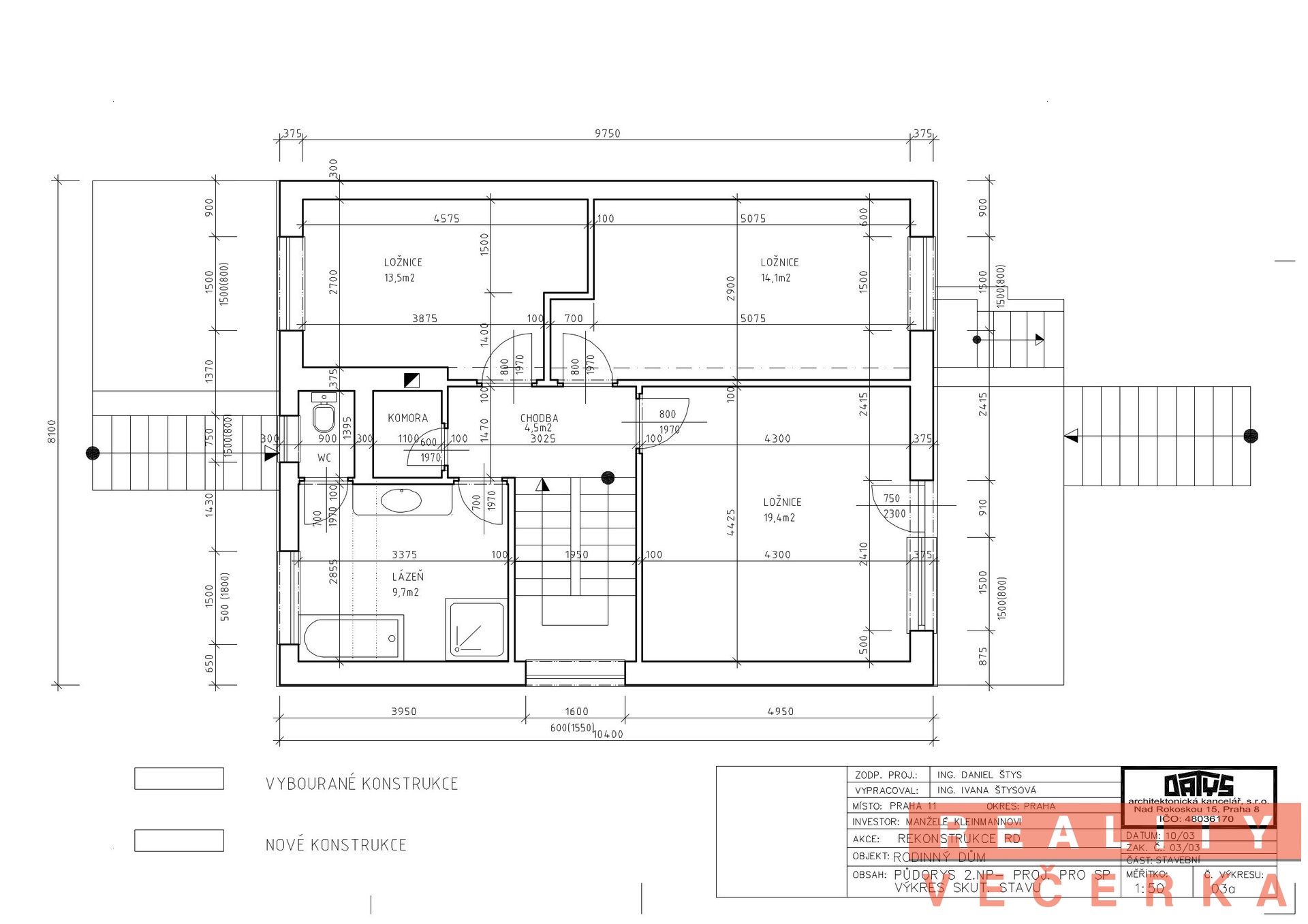 Nabízíme k prodeji vilu v Praze 4, Chodov, v ulici 7. května. Je vhodná jak pro rodinné bydlení, tak pro komerční využití. Se sousedním domem tvoří dvojdomek, oba domy jsou na sobě nezávislé jak užíváním, tak vlastnictvím. Tato část Chodova je tvořená rodinnými domy, ulice 7. května je ulicí vedlejší, provoz je zde minimální. Vila byla postavená v roce 1980 a v roce 2005 prošla velkou rekonstrukcí. Jde o tradiční cihlovou stavbu z 90. let minulého století, kdy byl dáván důraz na prostorné obytné místnosti, které zajistí pohodlí obyvatelům domu. Zastavěná plocha je 94 m2, zahrada je o ploše 266 m2. Vila má dvě nadzemní podlaží a dále jedno podzemní. Zastavěná plocha hlavní stavbou je 84 m2. Celý dům je podsklepený. 1. nadzemní podlaží Dominantní je zde obývací pokoj (31 m2) spojený s jídelním koutem (4,3 m2). Z obývacího pokoje je vstup do kuchyně, dále na terasu a z ní do zahrady. Kuchyně je zařízená kuchyňskou linkou a spotřebiči. K vaření je využívaný kombinovaný sporák elektrika – plyn. Dále je zde samostatné WC s umyvadlem. Z chodby vede schodiště do 1. patra a do sklepa. 2. nadzemní podlaží Toto patro tvoří tzv. klidovou zónu – jsou zde 3 ložnice (19,4 m2, 14,1 m2 a 13,5 m2), prostorná koupelna s vanou a sprchovým koutem, samostatné WC a komora Z jedné ložnice lze vstoupit na balkon s vyhlídkou do zahrady. Tyto prostory mohou sloužit nejen jako ložnice, ale i jako kanceláře, hostinské pokoje atd. Suterén Do suterénu lze vstoupit z přízemí domu nebo zvenčí přes garáž (26,3 m2), či samostatným vstupem ze zahrady. Mimo garáž jsou zde prostory na technické zázemí – plynový kotel na vytápění domu zn. Vailland, sušárna prádla, úložné místnosti. Garážová vrata jsou na dálkové ovládání Zahrada domu Je pojata jako okrasná, je jí věnovaná odborná péče. Zajišťuje místo pro relaxaci. Rekonstrukce vily proběhla v roce 2005 a zahrnuje: - elektronické zabezpečení proti násilnému vniknutí. Zabezpečení je napojeno na pult centrální ochrany bezpečnostní agentury - zateplení budovy systémem BAUMIT (polystyren o tloušťce 14 cm a nová střešní krytina - omyvatelná fasáda domu - dřevěná okna s trojskly a s bezpečnostní folií proti násilnému vniknutí do budovy - ve všech obytných místnostech masivní dubové parkety, v dalších dlažba - nová elektroinstalace, plastové vodovodní a odpadní potrubí - nový kotel zn. Vailland pro vytápění - kuchyňská linka - automatická garážová vrata - venkovní dlažba okolo domu a na terase. Na domě lze vystavět 3. nadzemní podlaží, obdobně jako u sousedního domu. Ze sítí je napojení na městský vodovod a tlakovou kanalizaci, plyn, elektřinu – dvě i tři fáze, pojistky 3x25 A. K parkování vozidel lze využít garáž pro 2 auta, dále prostor před garáží, nebo na ulici (není zde modrá zóna). PENB třídy G je dočasný. Metro Opatov je vzdálené 600 m chůze, Obchodní centrum Westfield (stanice metra Chodov) autem 6 minut. Koupi lze financova hypotékou, kterou vám zdarma zajistíme. Pro další informace kontaktujte makléře.