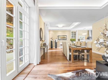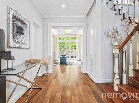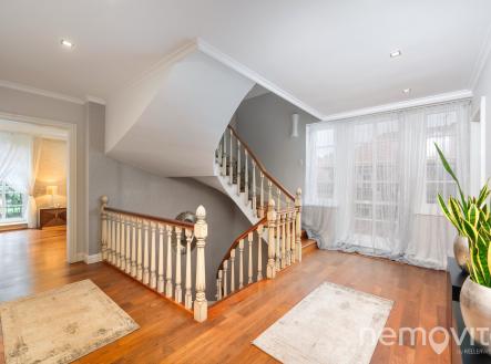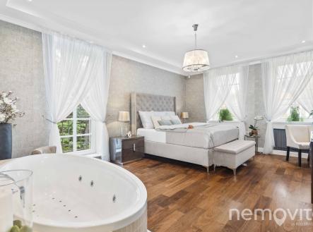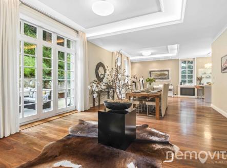Reprezentativní vila z roku 2006 na jednom z nejúžasnějších míst hlavního města, kde vládne naprostý klid, přesto však jen zhruba 2 km na metro. Nyní po významné cenové redukci. V soukromé a zabezpečené ulici, kterou obklopuje zeleň Šáreckého údolí, stojí tato velkorysá stavba s vnitřním bazénem, wellness zázemím, a dvěma dalšími hlavními podlažími. Hlavní highlight tohoto domu však spočívá v neopakovatelné poloze, která poskytuje pravý a nefalšovaný klid. Díky své poloze, dispozici i reprezentativnímu charakteru je nemovitost ideální jak pro rodinné bydlení, tak jako rezidence pro ambasády či diplomatické mise. Dominantu domu tvoří velkorysý obývací pokoj, jehož plocha je v součtu téměř 100 m2, a který je vybaven několika francouzskými okny. Ty v rámci celého domu poskytují úžasné průhledy do zelené zahrady, která je pochopitelně řešena s ohledem na maximalizací soukromí. Útulnou atmosféru vytváří nejen velká okna, ale také masivní podlahy z amerického ořechu nebo celkově střídmé, avšak kvalitní pojetí interiérů. V obývacím pokoji nechybí krb a rozměrné okno na terasu za domem. Ta je díky terénnímu rozdílu zcela oddělena od sousední ulice, a není na ni vidět ani z bočních pohledů. Obývák poskytuje prostor pro rozměrnou pohovku a především skutečně nevídaně velkou jídelnu. Prostor pojme i desítku hostů. Kuchyně je bokem, je možné ji oddělit, a její plocha je 15 m2 s tvarem linky do U. V prvním podlaží domu je k dispozici rovněž část pro hosty nebo office (vlastní šatna, vlastní koupelna). Zastřešený vstup navazuje na vstupní zádveří, po němž následuje vstup do haly. Té dominuje krásné dřevěné schodiště s patinovým vzhledem. Druhé podlaží je tvořeno třemi ložnicemi. Master bedroom s en-suite koupelnou a volně stojící hydromasážní vanou, ke které dále náleží šatna, je pokoj o samostatné ploše 24 m2. Dětské pokoje (19 a 25 m2) jsou propojené koupelnou a velkou šatnou. Nad celým půdorysem domu je k dispozici prostorná půda, která pojme i několik dalších pokojů. Aktuální konfigurace je tak 5+kk. Úplně dole se mimo skladů, technického zázemí a garáže pro dvě auta nachází především vnitřní bazén s posilovnou a wellness. Bazén má na délku 8 metrů, k dispozici je parní lázeň, další toaleta i sprcha. Výstup je možný přímo na jižní terasu, která je ukrytá před sousedy. Dům je vybaven chytrou domácnosti Crestron, kamerami i alarmem. V místnostech je soustava podhledů s LED osvětlením, k dispozici je centrální vysavač, automatická závlaha a venkovní rolety. Vytápění je řešeno el. kotlem. Šárecké údolí je unikátní lokalitou, přičemž ulice leží bokem od silnici, a je ukryta před zraky veřejnosti. Nevídanou vlastností je dostupnost centra v řádu několika minut a dobrý spoj na letiště. Dům je skvěle situovaný také vůči nedalekým mezinárodním školám. Třešničkou na dortu jsou pak přírodní scenérie údolí, které nabízí nespočet příležitostí od rychlého ranního běhu až po celodenní výlet s přáteli. Pokud vás o domě zajímá více informací, rád vám pošlu odkaz na web domu s detaily. ENG: A representative villa (2006) in one of the most amazing places in the capital city, where there is stunning peace and quiet, yet only about 2 km to the metro. In a private and secure street surrounded by the greenery of the Sarecke valley, this generous building has an indoor pool and wellness facilities. The main highlight of this house lies in its unique location, which provides true peace and a top level security. Thanks to its setting and layout, the property is ideal both as a family residence and as an elegant home for embassies. The dominant feature of the house is the living room, whose area is almost 100 sqm in total, with several French windows. These provide amazing views of the green garden, which is designed with maximum privacy. The living room has a fireplace and an entrance to the terrace. Thanks to the terrain difference, it is completely separated from the neighboring street. The space can easily accommodate up to twenty guests. On the first floor there is also a quest room or an office (dressing room, bathroom). The hall is dominated by a beautiful wooden staircase. The master bedroom (24 sqm) with an en-suite bathroom and a free-standing bathtub also has a dressing room. The children's rooms (19 and 25 sqm) are connected by a bathroom and a large dressing room. Above the entire floor plan of the house there is a spacious attic. The current layout offers a 4-bedroom villa with 3 bathrooms. At the very bottom there is an indoor swimming pool (8 m) with a gym, steam bath and wellness. It is possible to exit directly to the southern terrace. Sarecke valley is a unique location, with the street lying to the side of the road and hidden from public view. An unprecedented feature is the accessibility of the center within a few minutes and a good connection to the airport. The house is also perfectly located for nearby international schools. I will be happy to send you a link to the listing website.