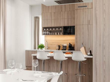 Nabízíme Vám možnost koupě nadstandardního mezonetového bytu na Praze 1 v ulici U Půjčovny. Byt se nachází v 5. a 6. nadzemním podlaží domu. Vnitřní podlahová plocha bytu je 206,9 m2. Dispozičně je byt řešen jako 4+kk (viz přiložené schema obou podlaží). Dále pak je u bytu terasa cca 11 m2. Byt byl zrekonstruován a vytvořen ve vyšším hotelovém standardu a nabízí se včetně veškerého vybavení, včetně nábytku (vestavného i přenositelného) i včetně veškerých spotřebičů a elektroniky. Za zmínku stojí dřevěné plovoucí podlahy (Torin), obklady a dlažby (Refin prestige - Itálie), sanita (Laufen, HansGrohe), dřevěná okna (Ditherm), klimatizace (Gree), svítidla (Londonlight, Astrolights), vestavný nábytek a kuchyňská linka (vše od firmy DVD Jaroměřice, lamino, spotřebiče Miele), televize (LG), pračka-sušička (Miele), vstupní bezpečnostní dveře. Vytápění bytu je zajišťováno elektrokotlem (je ale zaveden i plyn), ohřev teplé vody elektrickým bojlerem. Okna bytu jsou orientována do tichého vnitrobloku. K bytu náleží sklep plochy 6,72 m2. Možno zakoupit k soukromému bydlení, případně pronajímat dlouhodobě, ale i krátkodobě se zajímavým výnosem (nyní úspěšně pronajímáno na Booking s naprosto výjimečným hodnocením 9,7) Ve vedlejší Jeruzalémské ulici bude roku 2029 otevřen nový hotel InteContinental, který jistě zvýší prestiž lokality. Pro bližší informace mě kontaktujte