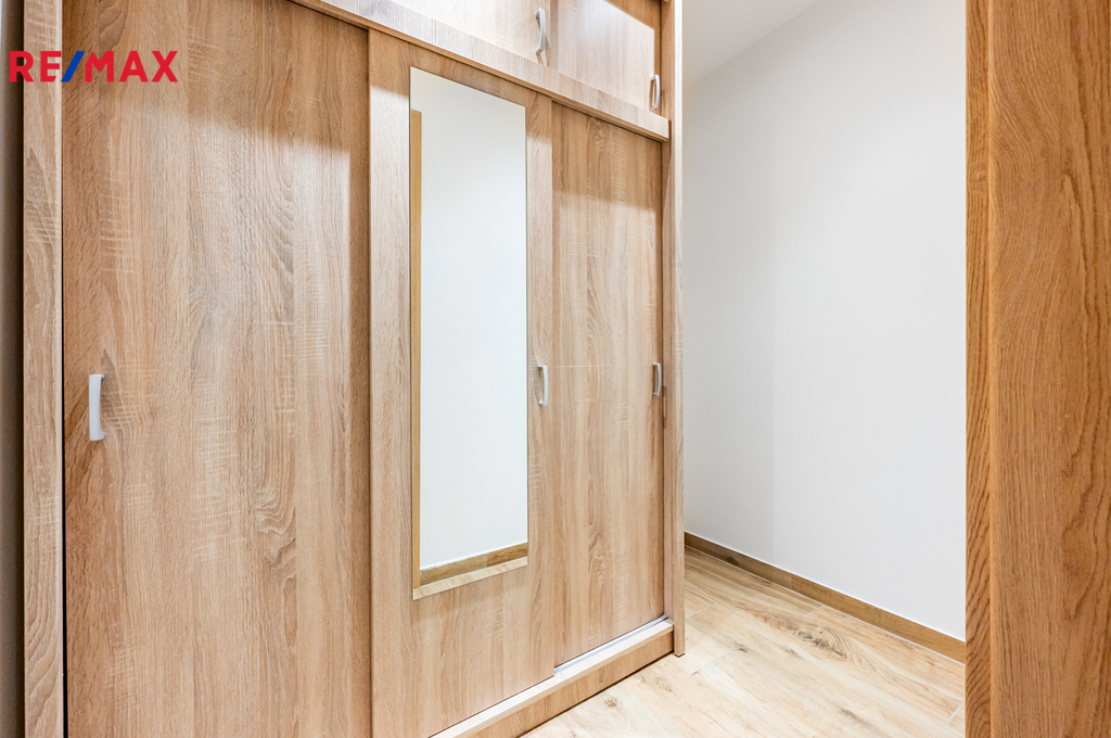 Byt 2+1 o ploše 55,25 m² s balkonem se nachází ve 4. patře panelového domu v klidné části Prahy 8 – Kobylis. Celý byt prošel kompletní rekonstrukcí a nabízí příjemné, moderní bydlení s výbornou dostupností do přírody i do města. Metro C – Kobylisy je dostupné za 6–8 minut chůze. Lokalita poskytuje kompletní občanskou vybavenost. Dvě minuty chůze od domu je supermarket Albert, lékárna, trafika, Alzabox, Zásilkovna, PPL Parcel Box, restaurace, cukrárna, kadeřnictví a skatepark. V blízkosti se nachází také Poliklinika Čumpelíkova a tenisové kurty. Okolí nabízí kavárny, další restaurace, obchody, poštu a další služby. V domě i okolí jsou klidní, bezproblémoví sousedé. Nedaleko leží přírodní park Čimický háj, který je ideálním místem pro procházky, běh nebo relaxaci v zeleni. Kousek od domu, několik minut jízdy tramvají, se nachází cyklostezka podél Vltavy. Je vhodná na procházky, jízdu na kole, bruslení či delší výlety. Po stezce je možné přejít přes lávku do parku Stromovka – jednoho z nejkrásnějších pražských parků s rozlehlými zelenými plochami, rybníky a místy pro odpočinek. Stezka pokračuje směrem k Troji, Zoo, až na Podbabu, kde se nachází lodní přívoz a atraktivní místa na letní procházky s točenou zmrzlinou či chlazeným nápojem zakoupeným v nedalekých stáncích s občerstvením. Kuchyňská linka je vybavena vestavěnými spotřebiči: myčkou nádobí, indukční varnou deskou, elektrickou troubou se samočisticí funkcí, mikrovlnnou troubou, digestoří s odtahem a vestavěnou lednicí s mrazákem s technologií No Frost. Samostatná místnost naproti kuchyni může sloužit jako jídelna nebo pracovna. Díky své poloze a přirozenému světlu působí velmi útulně a lze ji snadno zařídit jako příjemné místo pro stolování či domácí práci. Z ložnice je vstup na balkon s výhledem do zeleně. Pohled do stromů vytváří klidnou atmosféru a balkon je ideální pro ranní kávu i večerní posezení. Koupelna prošla rekonstrukcí spolu se zbytkem bytu a je vybavena vanou. Vytápění i ohřev vody jsou řešeny dálkově. V domě jsou dva výtahy – jeden menší a druhý větší, prostorný, vhodný i pro přepravu objemnějších předmětů. Poplatky činí 6 700 Kč. Elektřina se převádí na nájemce. Kauce 22 000 Kč, provize RK 22 000 Kč bez DPH. Energetická náročnost: D.