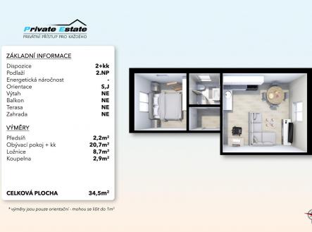 Pronájem bytu, 2+kk, 36 m²