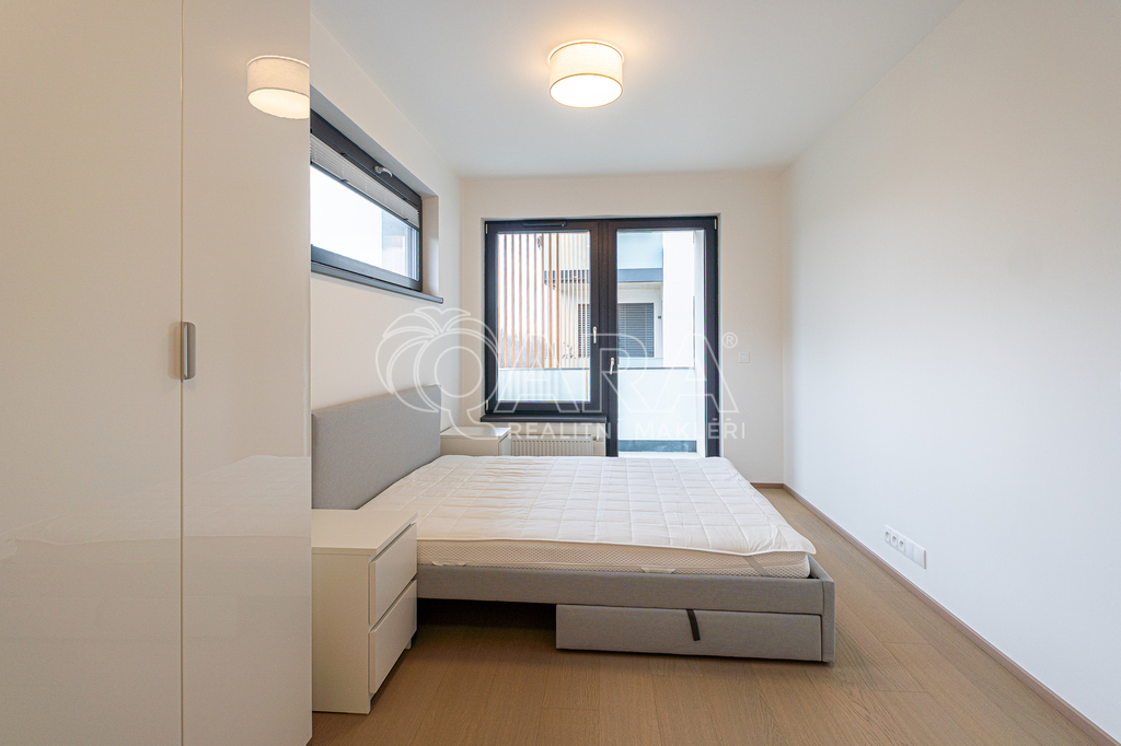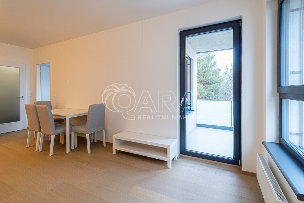 Nabízím k dlouhodobému pronájmu zcela nový byt 2+kk o velikosti 51,2 m² s balkonem. Byt se nachází v 3. NP novostavby v projektu Malešický háj. Okna jsou orientována na severovýchod a mají venkovní elektrické žaluzie, které zajišťují komfortní regulaci světla. K bytu náleží také sklepní kóje. Dům je umístěn v bezprostřední blízkosti Malešického lesa. Pět minut chůze od domu je autobusová zastávka s přímým a rychlým spojením na stanici metra Želivského (11 minut jízdy). Byt je plně vybaven (viz foto) a disponuje dostatečným množstvím úložných prostor. V koupelně je kvalitní sanita značky Villeroy & Boch a pračka se sušičkou (2 v 1). K bytu náleží také parkovací stání, které je možné pronajmout za poplatek 2 000 Kč měsíčně. Poplatky spojené s užíváním bytu pro dvě osoby činí 4 000 Kč + 1 400 Kč elektřina (poplatky jsou hrazeny formou měsíčních záloh s následným ročním vyúčtováním skutečných nákladů). Kauce činí 37 500 Kč. Provize RK: 28 500 Kč. V bytě dosud nikdo nebydlel. Staňte se prvním nájemcem a užijte si zcela nové prostředí! K nastěhování ihned.