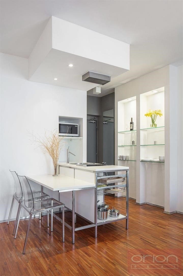 Moderně zařízený apartmán 1+kk (30m2) ve vyhledávané lokalitě Praha 5 - Smíchov, pouze pár minut od Francouzského lycea a nákupního centra Nový Smíchov. Apartmán je v 1. patře a nabízí plně vybavený kuchyňský kout s jídelním koutem, je zde sofa, dvoupostel, šatna se skříní, koupelna se sprchovým koutem a samostatná toaleta. K dispozici je TV/SAT/WIFI . Byt se nachází v těsné blízkosti tramvajové zastávky U Zvonu, 5 min na metro Anděl. V blízkosti se nachází restaurace, obchody a park Petřínské sady. K dispozici ihned. Nájemné 32.000 Kč včetně služeb a WIFI, zahrnuje úklid 1x týdně s výměnou lůžkovin a ručníků.