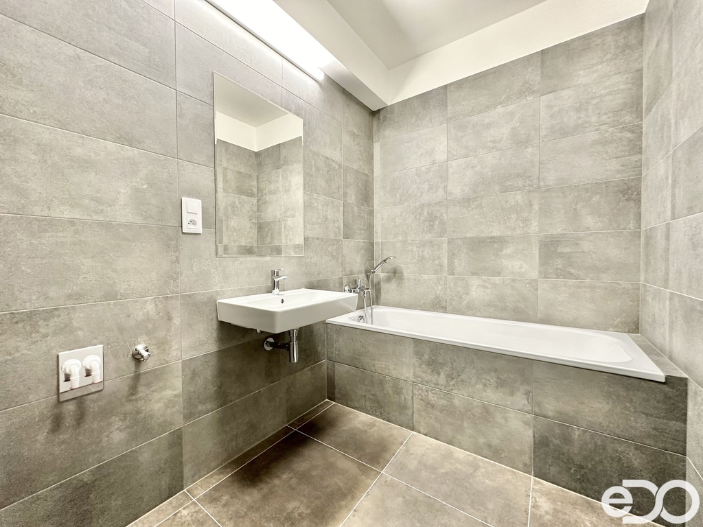 Nabízíme Vám k dlouhodobému pronájmu exkluzivní byt 1+kk 53 m² s balkonem a garážovým parkovacím stáním v ulici Zlochova v novém projektu Nové Modřany na Praze 12. Bytová jednotka o celkové užitné ploše 53 m² se nachází v 5. podlaží skeletové řadové novostavby a byla obydlená pouze přibližně rok a půl. Užitná plocha bytu, tedy plocha obytných místností uvnitř vnějších stěn nemovitosti, je 36,7 m². Skládá se z předsíně s novou vestavěnou skříní na míru, obývacího pokoje s novou kuchyní na míru (německé high-quality značky Nobilia), koupelny s vanou, WC a umyvadlem, a velkého krytého balkonu (11,4 m²), který je přístupný z obývacího pokoje. Obývací pokoj je situován na východ. Co se týče spotřebičů, tak kuchyně disponuje indukční varnou deskou s digestoří, vestavěnou myčkou, mikrovlnnou troubou, elektrickou troubou a lednicí s mrazákem. Vše značky Siemens. K bytové jednotce dále náleží velký zděný sklep (4,9 m²) a garážové parkovací stání. Další garážová stání lze dopronajmout. Je zde také možnost využívat kočárkárnu, kolárnu či speciální místnost na mytí kol. Lokalita: Projekt se nachází v klidné rezidenční zástavbě v městské části Modřany kousek od řeky Vltavy a rekreační oblasti Modřanská rokle, která je rovněž přírodní památkou, kde lze využít naučnou stezku či několik cyklostezek. Propojuje tak v sobě sílu velkoměsta a lehkost přírody. V bezprostředním okolí lze najít veškerou občanskou vybavenost – školky, základní a střední školy, obchody, služby, restaurace, polikliniku, poštu, sportoviště a mnoho dalších volnočasových aktivit. Přímo u projektu se nachází zcela nové bistro, dětská hřiště, venkovní posilovna, fotbalová hřiště, tenisové kurty s restaurací a další. Doprava: Kromě několika autobusových zastávek v bezprostřední blízkosti se přibližně 700 m od domu nachází tramvajová zastávka Čechova čtvrť, ze které se dostanete přímým spojem do centra do 20 minut. Autem je oblast také dobře dostupná. Na Pražském okruhu jste přibližně za 10 minut. Jde o ideální byt jak pro jednotlivce, tak pro pár, bez zvířat a pro nekuřáky. Je k dispozici ihned. Nájemné zde činí 21 000 Kč plus zálohové platby vč. elektřiny 4 300 Kč. Energie se nepřevádí. Celkem je tedy nájemné 25 300 Kč. Vratná kauce je ve výši jednoho nájmu bez poplatků. Provize je ve výši jednoho a půl měsíčního nájmu bez poplatků. V případě zájmu o prohlídku či více informací mne neváhejte kontaktovat. Rád Vás uvidím osobně přímo v bytě či v rámci videoprohlídky z pohodlí Vašeho domova.