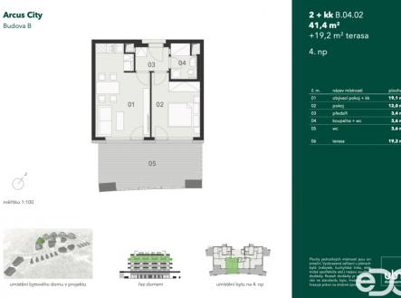 Nabízíme Vám k dlouhodobému pronájmu exkluzivní byt 2+kk 64 m² s terasou a venkovním parkovacím stáním v ulici Hasilova v novém projektu Arcus City na Praze 13. Bytová jednotka o celkové užitné ploše 64 m² se nachází ve 4. podlaží skeletové řadové novostavby a byla obydlená pouze necelý rok. Užitná plocha bytu, tedy plocha obytných místností uvnitř vnějších stěn nemovitosti, je 41,5 m². Skládá se z předsíně, ložnice s novou vestavěnou skříní na míru, obývacího pokoje s novou kuchyní na míru (německé high-quality značky Nobilia), koupelny se sprchovým koutem, WC a umyvadlem, a velké terasy (19,2 m²), která je přístupná z ložnice i z obývacího pokoje. Pokoje jsou situovány na jihovýchod. Co se týče spotřebičů, tak kuchyně disponuje indukční varnou deskou s digestoří, vestavěnou myčkou, mikrovlnnou troubou, elektrickou troubou a lednicí s mrazákem. Vše značky Siemens. K bytové jednotce dále náleží zděný sklep (3,2 m²) a venkovní parkovací stání. Je zde také možnost využívat kočárkárnu či kolárnu. Aktuální nájemce nabízí v případě zájmu odprodej vybavení celého bytu. Lokalita: Projekt se nachází na pomezí městských částí Stodůlky a Řeporyje, které jsou vyhledávanými klidnými a malebnými čtvrtěmi. V bezprostředním okolí lze najít veškerou občanskou vybavenost – školky, základní a střední školy, obchody, služby, restaurace, polikliniku, poštu, sportoviště a mnoho dalších volnočasových aktivit. Atraktivnost lokality je zvýšena blízkostí jednoho z největších OC v Praze – Metropole Zličín, nebo rovněž Golf Clubu Praha. K relaxaci a sportovnímu vyžití lze využít bohatou okolní zeleň – biopark Řepora nebo Prokopské a Dalejské údolí. Doprava: Pouze pár kroků od bytového domu na náměstí Arcus City je umístěna zcela nová zastávka, ze které Vás autobus doveze za minutu k metru stanice Stodůlky či Luka. Autem je oblast také dobře dostupná. Projekt se nachází v blízkosti Pražského okruhu, do centra Prahy nebo na letiště Václava Havla se dostanete za 15 min. Jde o ideální byt jak pro jednotlivce, tak pro pár či malou rodinu, bez zvířat a pro nekuřáky. Je k dispozici ihned. Nájemné zde činí 23 500 Kč plus zálohové platby včetně elektřiny 4 800 Kč. Energie se nepřevádí. Celkem je tedy nájemné 28 300 Kč. Vratná kauce je ve výši jednoho nájmu bez poplatků. Provize je ve výši jednoho a půl měsíčního nájmu bez poplatků. V případě zájmu o prohlídku či více informací mne neváhejte kontaktovat. Rád Vás uvidím osobně přímo v bytě či v rámci videoprohlídky z pohodlí Vašeho domova.