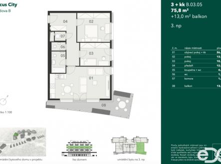 Pronájem atraktivní bytové jednotky 3+kk/B + garážové parkovací stání, 93 m², 33 000 Kč, Praha 13