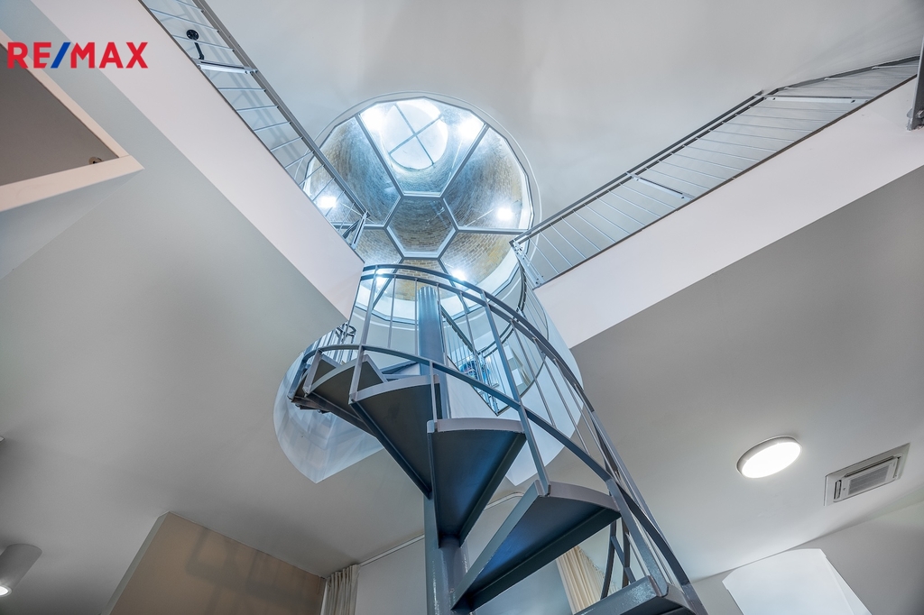 Nabízím k pronájmu zcela výjimečný, dvoupodlažní loft o velikosti 146 m² v prestižní rezidenci Korunní dvůr na Vinohradech. Loft je pohodlně přístupný výtahem. Nachází se přímo ve věži objektu pod dominantním industriálním komínem, který je architektonicky přiznaný v interiéru prostřednictvím proskleného průhledu s efektním nasvícením. Interiér nabízí naprosté soukromí, klid a velmi specifickou atmosféru, kterou běžný byt nenabídne. Ložnice a jídelní část jsou odděleny skleněnou stěnou, jinak je prostor řešen jako velkorysý celek. K dispozici jsou 2 koupelny a 2 toalety. Prostor je vybaven vzduchotechnikou s funkcí chlazení i topení. Lokalita Vinohrad patří dlouhodobě mezi nejprestižnější rezidenční čtvrti v Praze s výbornou dopravní dostupností, kompletní občanskou vybaveností, restauracemi, kavárnami a parky v docházkové vzdálenosti. Vybavení odpovídá fotografiím a je součástí pronájmu. Součástí nájmu je také garážové stání a internetové připojení. Rezidence nabízí 24/7 ostrahu, uzavřený areál a vysokou míru bezpečí. Prostor je kolaudován jako ateliér, nicméně je plně přizpůsoben k bydlení a byl takto užíván. Náklady na bydlení: nájemné: 47 000 Kč / měsíc poplatky za služby: 9 821 Kč / měsíc zálohy na elektřinu: 1 500 Kč / měsíc provize RK: 47 000 Kč + DPH K nastěhování ihned.