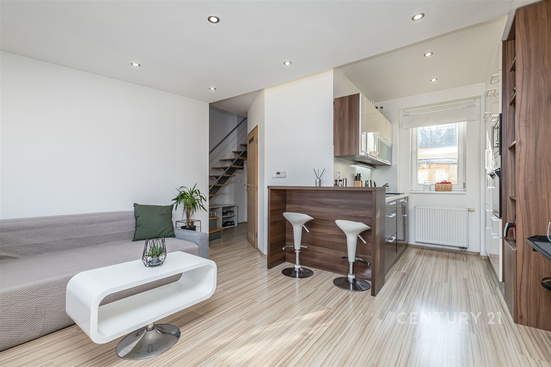 Hledáte domov, který vyčnívá z řady? Nabízíme k dlouhodobému pronájmu výjimečný, prosvětlený byt v prestižní lokalitě pražského Smíchova. Tento prostor v sobě spojuje eleganci historické čtvrti s moderním komfortem a naprostým soukromím. Unikátní prostor s dechberoucími výhledy na Prahu. Byt se nachází v 5. patře udržovaného domu s výtahem a jeho největší předností je otevřenost a klid. Světlu a poloze vysoko nad okolním ruchem si můžete vychutnat unikátní atmosféru a výhledy na Strahov, park Sacre Coeur, Mrázovku i věže historického centra. Dispozice a vybavení (53 m2) Společenská zóna (20,3 m2): Světlý obývací pokoj s kuchyňským koutem je spodní část bytu. Velká okna zajišťují dostatek přirozeného světla po celý den. Soukromá oáza (24,3 m2): Po elegantním schodišti vstoupíte do vyvýšené části bytu. Tato prostorná a tichá zóna je stvořena pro ničím nerušený odpočinek. Chodba a koupelna (8,3 m2): Vstupní chodba zahrnuje schodiště a útulnou koupelnu s pračkou. Vnitroblok s atmosférou: Nájemníci mají výhradní přístup do klidného vnitrobloku – ideální místo pro letní posezení nebo grilování s přáteli. Lokalita, kde máte vše na dosah Bydlení v Duškově ulici nabízí historii vily Bertramka i tep moderního Smíchova: Perfektní spojení: Tramvaj „Bertramka“ je pouhých 150 m od vchodu. Na dopravní uzel Anděl dojdete za 10 minut pěšky. Městský život: Pár minut chůze vás dělí od OC Nový Smíchov, kin, vyhlášených kaváren a restaurací. Příroda v okolí: Relaxovat můžete v přilehlých parcích nebo na oblíbené smíchovské náplavce. Parkování: Možnost pohodlného parkování přímo před domem (modré a fialové zóny). Pro koho je tento byt? Pro jednotlivce nebo pár, kteří hledají dlouhodobé a stabilní zázemí. Pro ty, kteří chtějí bydlet v centru dění, ale po příchodu domů zavřít dveře a užívat si ticho a výhled, který se neomrzí.