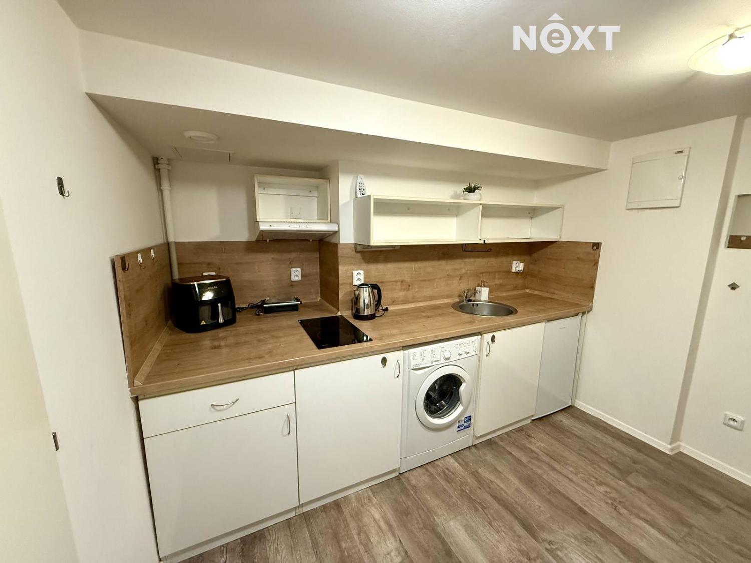 Nabízíme k pronájmu útulný ateliér (33,3 m2) o dispozici 1+1 který se nachází v suterénu cihlového domu v klidné části pražských Ďáblic. Ateliér má praktickou dispozici, která nabízí dostatek komfortu i úložného prostoru. Skládá se z obytné místnosti a vybavené, samostatné kuchyně (lednice, pračka, plotýnka na vaření). Velkým benefitem je prostorný sklad, který lze využít jako šatnu nebo úložný prostor a je zde umístěná sušička. Koupelna je se sprchovým koutem, společná s toaletou. Plastová okna jsou orientována na západ, do vnitrobloku / zahrady s terasou, kterou lze celoročně využívat. Topení je elektrické, ohřev vody bojlerem. Na podlaze je kvalitní vinyl a dlažba. V domě je také společná garáž, sloužící k uskladnění kol, kočárků apod. Dopravní dostupnost 8 min. autobusem na metro „C“ Ládví. Pro více informací volejte makléřku. Pro komunikaci uvádějte evidenční číslo zakázky N116038.
