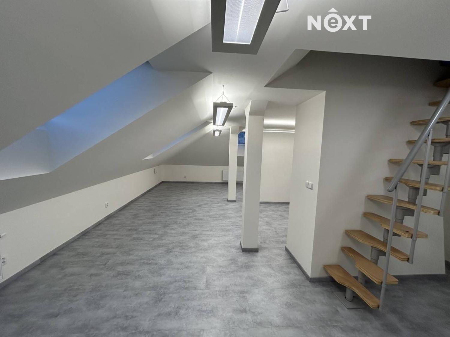 V exkluzivním zastoupení nabízím k dlouhodobému pronájmu krásný, atypický podkrovní prostor o celkové ploše 65 m², vhodný jak k bydlení, tak i k podnikání. Prostor je nově vybudovaný a nachází se ve 2. patře domu bez výtahu v ulici Vrážská, v centru Radotína. Je orientován na severozápadní stranu. Tento otevřený podkrovní prostor disponuje kuchyňskou linkou plně vybavenou spotřebiči – lednicí, troubou, varnou deskou, myčkou a digestoří. Obývací část je rozdělena na dva velké prostory, které lze v případě potřeby zcela oddělit, například instalací posuvných dveří. Velkým bonusem je vstup po dřevěném schodišti do mezonetového prostoru se sníženým stropem, který lze využít jako spací patro nebo úložný prostor. V prostorné vstupní chodbě se nachází oddělená koupelna vybavená sprchovým koutem, umyvadlem, toaletou, pračkou a topným žebříkem. Chodba je otevřená do obývacího prostoru a nabízí možnost vybudování úložných skříní. V celém prostoru jsou instalována závěsná stropní světla a střešní okna, včetně mezonetového patra, která zajišťují dostatek denního světla. Podlahy jsou z kvalitního a odolného vinylu. Vytápění je řešeno radiátory, ohřev vody elektrickým bojlerem. Dům se nachází v bezprostřední blízkosti MHD i vlakového spojení s dojezdem cca 15 minut na Smíchovské nádraží. V docházkové vzdálenosti je kompletní občanská vybavenost – obchody, restaurace, poliklinika, školy i školky. Radotín je vyhledávanou lokalitou díky propojení s přírodou, sportovními areály, golfovým hřištěm, biotopem, prestižním gymnáziem a bohatým kulturním životem. K prostoru náleží otevřené garážové stání ve dvoře. Tento zajímavý nebytový prostor, vhodný i k bydlení, je ihned k nastěhování. Pro více informací mě neváhejte kontaktovat, ráda s vámi domluvím prohlídku. Pro komunikaci uvádějte evidenční číslo zakázky N116226.