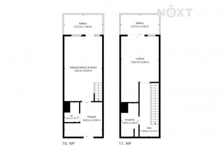 Nabízím k pronájmu krásný mezonetový byt o dispozici 2+kk, obytné ploše 69 m², užitné ploše 82 m², s garážovým stáním a dvěma balkony (13 m²). Nachází se v 10. a 11. patře moderní novostavby v ulici Panušková, v Praze 4 – Krč. Horní patro bytu je zároveň poslední, což zajišťuje soukromí a velmi pěkné výhledy napříč Prahou. Díky jihozápadní orientaci je byt po celý den krásně prosvětlený. Byt prošel v roce 2024 rekonstrukcí a je připraven k okamžitému nastěhování. Je vybaven moderním nábytkem a kvalitními spotřebiči, dle fotodokumentace. Vstupní předsíň nabízí vestavěnou skříň a kout s úložným prostorem. Také je zde vstup na samostatnou toaletu. Z předsíně se dále dostanete do prostorného obývacího pokoje, který je propojen s kuchyňským a jídelním koutem. Kuchyň je plně vybavena: lednice, trouba, mikrovlnná trouba, myčka a varná deska. Z pokoje je přístup na zastřešený balkon. Po schodišti se vchází do horního patra, kde se nachází prostorná chodba, odkud se dostanete do ložnice se šatní skříní, pracovním koutem a vstupem na druhý balkon. Na tomto podlaží je také koupelna se sprchovým koutem a toaletou. V celém bytě jsou kombinovány plovoucí podlahy a dlažba v moderním provedení. Dům nabízí non-stop recepci a bezpečnostní službu, které poskytují vysoký komfort a bezpečí. V blízkém okolí je k dispozici kompletní občanská vybavenost — řada obchodů a restaurací, poliklinika, metro C Budějovická, autobus, široké možnosti sportovního vyžití i další služby. Autobusová zastávka Ryšánka je přímo pod domem. Pokud jde o zeleň a výlety do přírody, v blízkosti se nachází Centrální park Pankrác i mnoho dalších parků v okolí. Jedná se o místo, které splňuje všechny nároky na moderní městské bydlení. Tento byt není vhodný k chovu domácích mazlíčků. V případě zájmu mě kdykoliv kontaktujte. Ráda Vás bytem osobně provedu. K dispozici ihned. Těším se na shledání. Pro komunikaci uvádějte evidenční číslo zakázky N115481.
