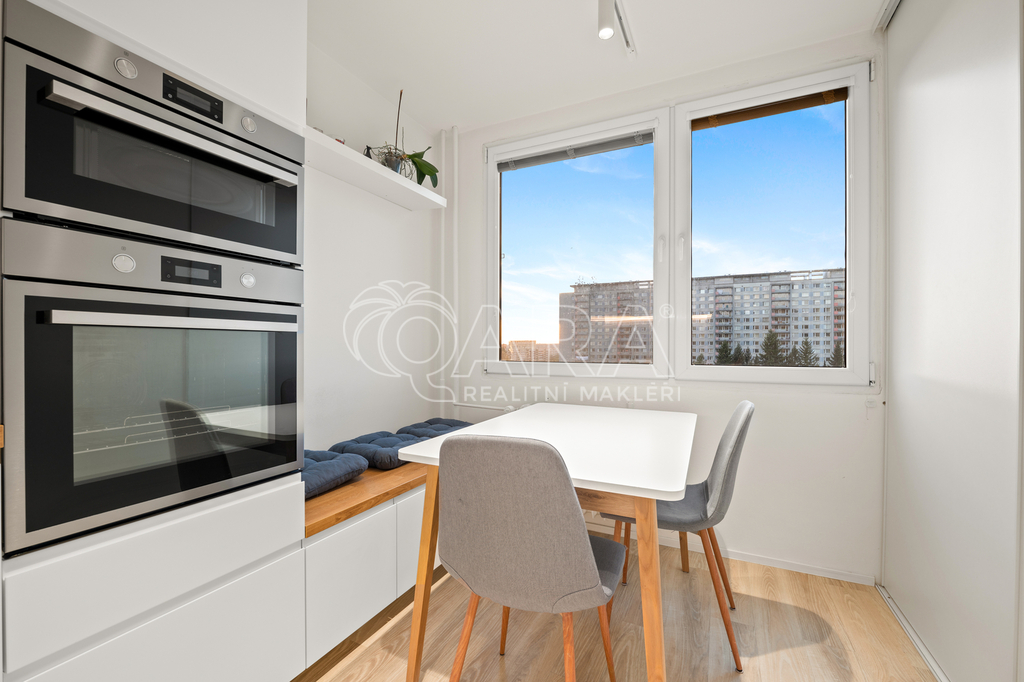 Pronájem kompletně vybaveného, skvěle udržovaného bytu o dispozici 3+1 s lodžií v ulici Střekovská kousek od metra Ládví. Byt prošel kompletní rekonstrukcí, disponuje podlahovou plochou 64 m² + lodžie 4,2 m² a nachází se v 8. nadzemním podlaží domu s výtahem. Byt se pronajímá kompletně vybavený, takže k nastěhování vám postačí pouze osobní věci. Součástí je kuchyňská linka s vestavěnými spotřebiči (indukční varná deska, digestoř, elektrická trouba, mikrovlnná trouba, lednice s mrazákem), dále jídelní stůl se židlemi, sedací souprava, TV stolek s televizí, postel, vestavěné skříně a botník. K dispozici je rovněž pračka a sušička. Nábytek je možné v případě zájmu i odstěhovat a byt pronajmout nevybavený. Okna pokojů jsou orientována na východ, obývací pokoj s lodžií a kuchyň na západ. Podlahy v bytě jsou vinylové, v koupelně a na WC je dlažba. Občanská vybavenost je naprosto skvělá. Docházkově do 5 min. vše co rodina k běžnému životu potřebuje. Je tu hned několik mateřských a základních škol, gymnázium i učiliště, zastávka metra, tramvaje i autobusu, poliklinika, koupaliště, banky, veškeré obchody a mnoho jiného. Cena nájmu: 28 000 Kč + 4 500 Kč záloha na poplatky. Elektroměr bude převeden na nájemníka. Pokud hledáte bydlení v příjemném prostředí se skvělou dostupností a nechcete se starat o vybavení, zavolejte nebo napište a byt vám rád osobně ukáži. Byt je volný od 1.2.2026.