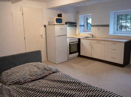ID: PodKes Nabízíme k pronájmu byt po rekonstrukci, situovaný v sníženém přízemí udržovaného domu (bez výtahu). Z předsíně je vstup do první místnosti, která je vybavena šatní skříní a policemi pro dostatek úložného prostoru. Z okna je příjemný výhled do malé, upravené zahrady. Druhá, samostatná místnost je vybavena kuchyňskou linkou se všemi potřebnými spotřebiči. Součástí pokoje je také velká šatní skříň, další police, dvoulůžková postel a menší samostatná místnost, kterou lze využít jako šatnu nebo komoru. Koupelna je vybavena vanou a pračkou, toaleta je součástí koupelny. Byt je ideální pro 12 osoby. Výborná dopravní dostupnost zastávka MHD Pod Kesnerkou přímo u domu, stanice metra Anděl (linka B žlutá) 3 zastávky. Nastěhování možné ihned. Nájemné: 17 500 Kč/měs Poplatky: 4 000 Kč/měs včetně elektřiny Kauce: 22 000 Kč (možnost úhrady na splátky) Provize: 21 000 Kč Pro více informací nás neváhejte kontaktovat.