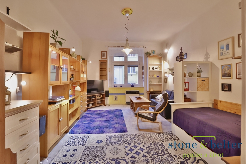 Nabízíme k pronájmu útulné bydlení nacházející se v žádaných Košířích, jen pár minut od Anděla. Světlý byt 1+1 o rozloze 49 m² umístěn ve 4 patře domu s výtahem překvapí klidem i praktičností. Dominantou je velkorysý obývací pokoj 21,6 m². Samostatná kuchyně 15,8 m², která s přehledem pojme posezení i jídelní stůl. Navazuje komora 0,9 m² a v centrální chodbě (7,4 m²) se nachází i koupelna 2,8 m² a samostatné WC 0,9 m². Okna kuchyně směřují na východ do tichého vnitrobloku, obývací pokoj do klidné ulice směr západ. Plastová okna dobře těsní a o vytápění se starají plynová topidla WAW. - Prostorná kuchyně vybavená veškerými potřebnými a kvalitními spotřebiči. - Vkusně zařízená koupelna a oddělená toaleta. - V bytě se nachází komora s regály a vysoké stropy poskytují dostatek odkládacího prostoru. Lokalita nabízí příjemný městský život, kde máte vše doslova na dosah ruky: tramvaj, Metro Anděl B, obchody, kavárny, zdravotní péče, školy, školky, restaurace. Kousek je i náplavka a parky pro relaxaci po pracovním dni. Náklady pro nájemníka: - Nájemné: 19 900 Kč/měs. - Poplatky za dům (voda, odpad, spol. elektřina apod.): 1 000 Kč/měs. - Elektřina: cca 1 000 Kč/měs. – převod na nájemce. - Plyn: cca 2 300 Kč/měs. – převod na nájemce. - Kauce: 25 000 Kč. - Provize činí měsíční nájem + DPH. Byt ideální jak pro jednotlivce, pár, tak i startovací pro mladou rodinu. K nastěhování volný ihned s tím, že preferujeme dlouhodobý pronájem, bez domácích mazlíčků. Pokud vás nabídka zaujala neváhejte mě kontaktovat, případně si jen napište si o prohlídku — rád termín potvrdím.