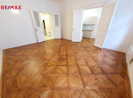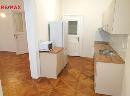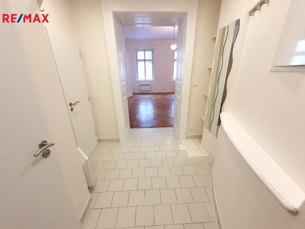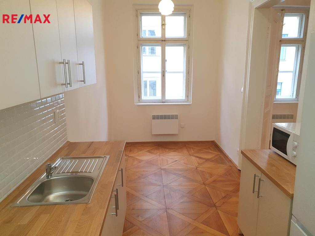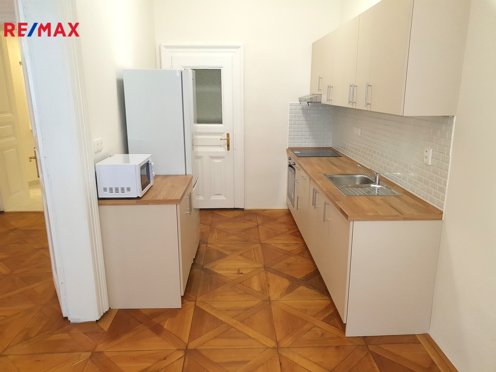 Pronájem kompletně zrekonstruovaného, nezařízeného, prostorného, velmi světlého bytu 1+1 s východní orientací, o celkové užitné ploše 52 m2, podlahové ploše bytu 48,40 m2, který se nachází ve 3. patře (4.NP/5.NP) památkově chráněného cihlového domu z roku 1878 s výtahem v ulici Hradební, Praha 1, Staré Město, v docházkové vzdálenosti od stanice metra B Náměstí Republiky, OC Palladium, Nemocnice Na Františku, nebo Staroměstského náměstí. Obytná část bytu v OV je tvořena obývacím pokojem 27 m2, kuchyní 13 m2 se spíží a nově kompletně vybavenou a zařízenou kuchyňskou linkou se sklokeramickou deskou, elektrickou troubou, odsavačem par, nerezovým dřezem s odkládací plochou, myčkou nádobí, samostatně stojící kombinovanou ledničkou a mikrovlnou troubou, koupelnou 4 m2 se sprchovým koutem, umyvadlem, vrchem plněnou pračkou a tepelným žebříkem pro sušení prádla a ručníků, samostatným WC 1,70 m2 a předsíní 5,50 m2 s úložným prostorem. Dále lze využít sklepní kóji 4 m2 v suterénu domu, ze společných prostor kolárnu a kočárkárnu v přízemí domu a sušárnu o patro výše nad bytem. K ohřevu teplé vody slouží elektrický bojler, k vytápění pak elektrické, lehce ovladatelné, přímotopy v jednotlivých místnostech. Okna bytu jsou repasovaná, dřevěná špaletová, na podlahách jsou nádherné dřevěné mozaikové kazetové parkety vídeňského typu a dlažba. V předsíni je nad sníženým stropem dostatek dalšího úložného prostoru. Kromě výborného dopravního spojení do centra Prahy, případně směrem na Letnou, Prahu 7 a Prahu 6, je v okolí zajištěna kompletní občanská vybavenost s obchody, restauracemi, službami a sportovní vybaveností – plavecké bazény v hotelu AXA a sportcentru YMCA, lezecké stěny, bowling, atd. Kompletní měsíční zálohové poplatky za služby SVJ a elektřinu ve výši 5.000,- Kč měsíčně pro jednu osobu, odběry se na nájemce nepřevádí. Bezpečnostní vratná záloha je požadována ve výši 30.000,- Kč. Byt je připravený k okamžitému nastěhování a je ideální pro jednu až dvě osoby. Prosíme nekuřáky a bez zvířat, upřednostňujeme dlouhodobý pronájem. Pronajímatel si vyhrazuje právo vybrat nájemce na základě jím zvolených kritérií. V případě zájmu zašlete na uvedený email základní informace o budoucích nájemcích, jejich vzájemném vztahu, věk, národnost, zaměstnání (firmu a pozici) nebo podnikání (z čeho budou hrazeny nájem a zálohové poplatky), začátek doby nájmu, orientační dobu nájmu, a další informace, které by o nájemcích měli pronajímatelé vědět.