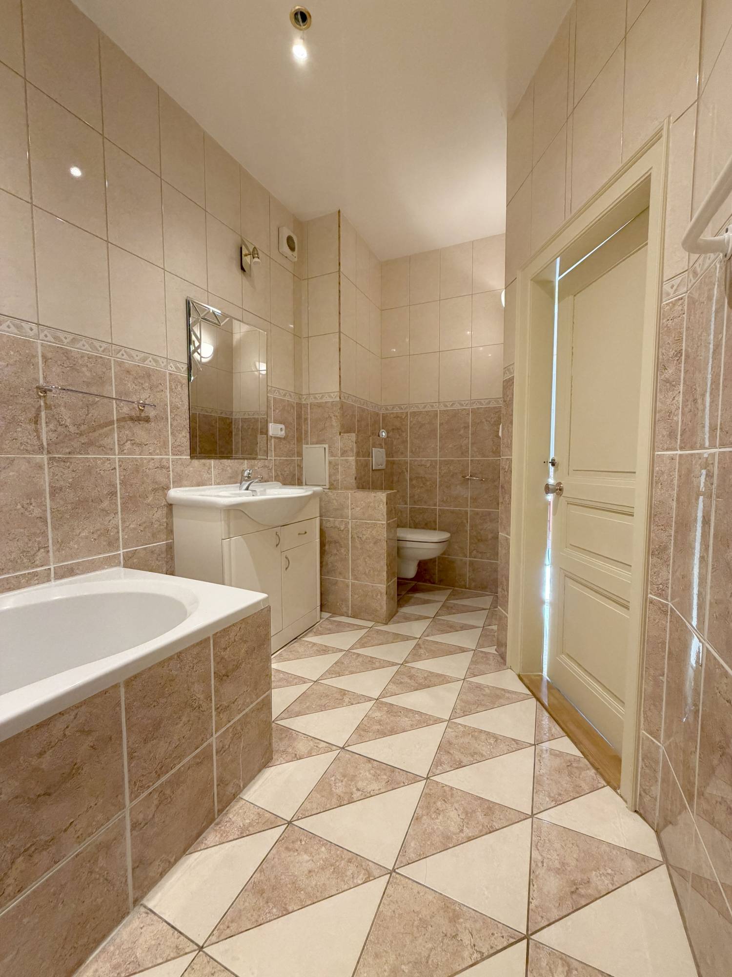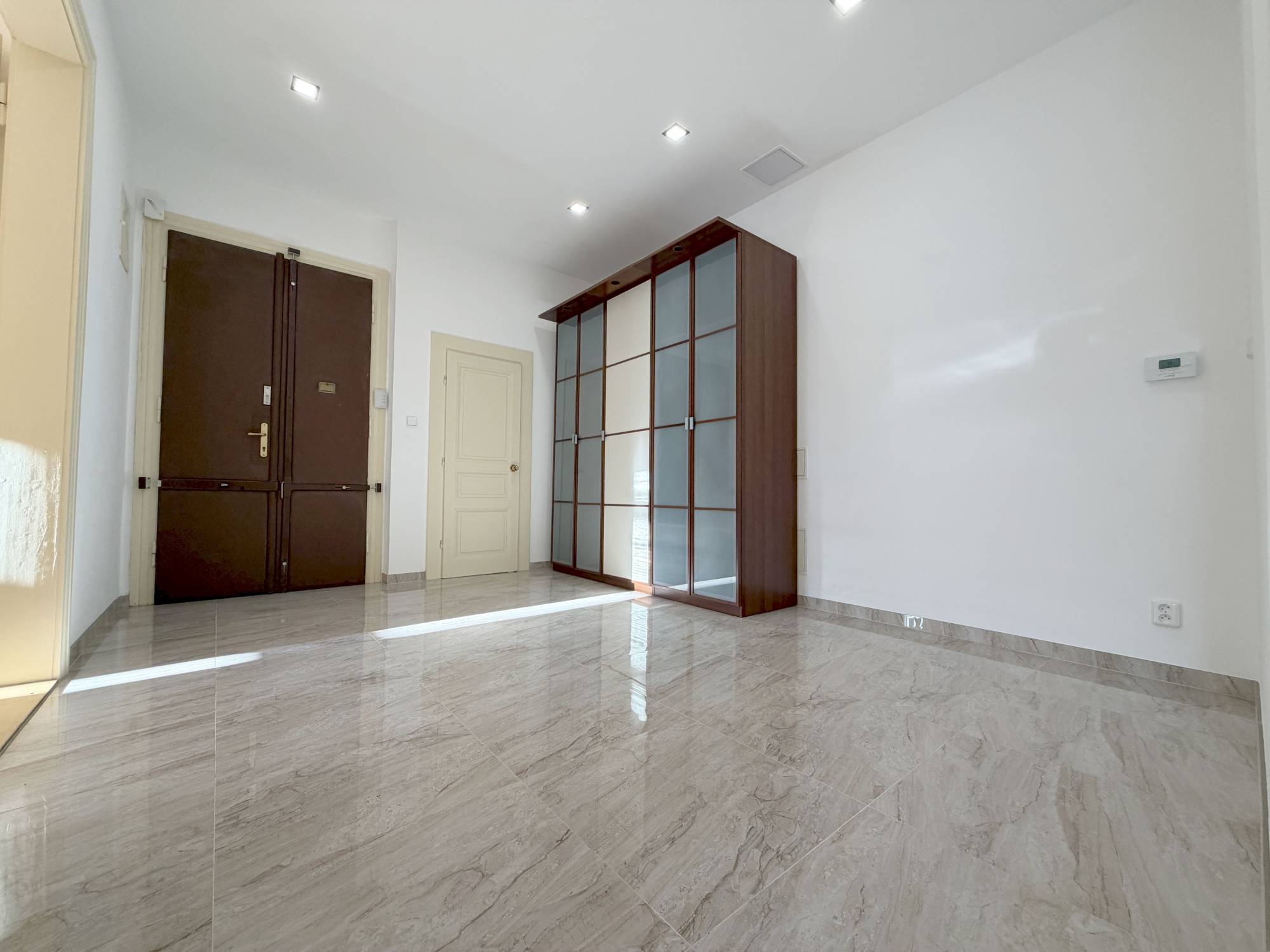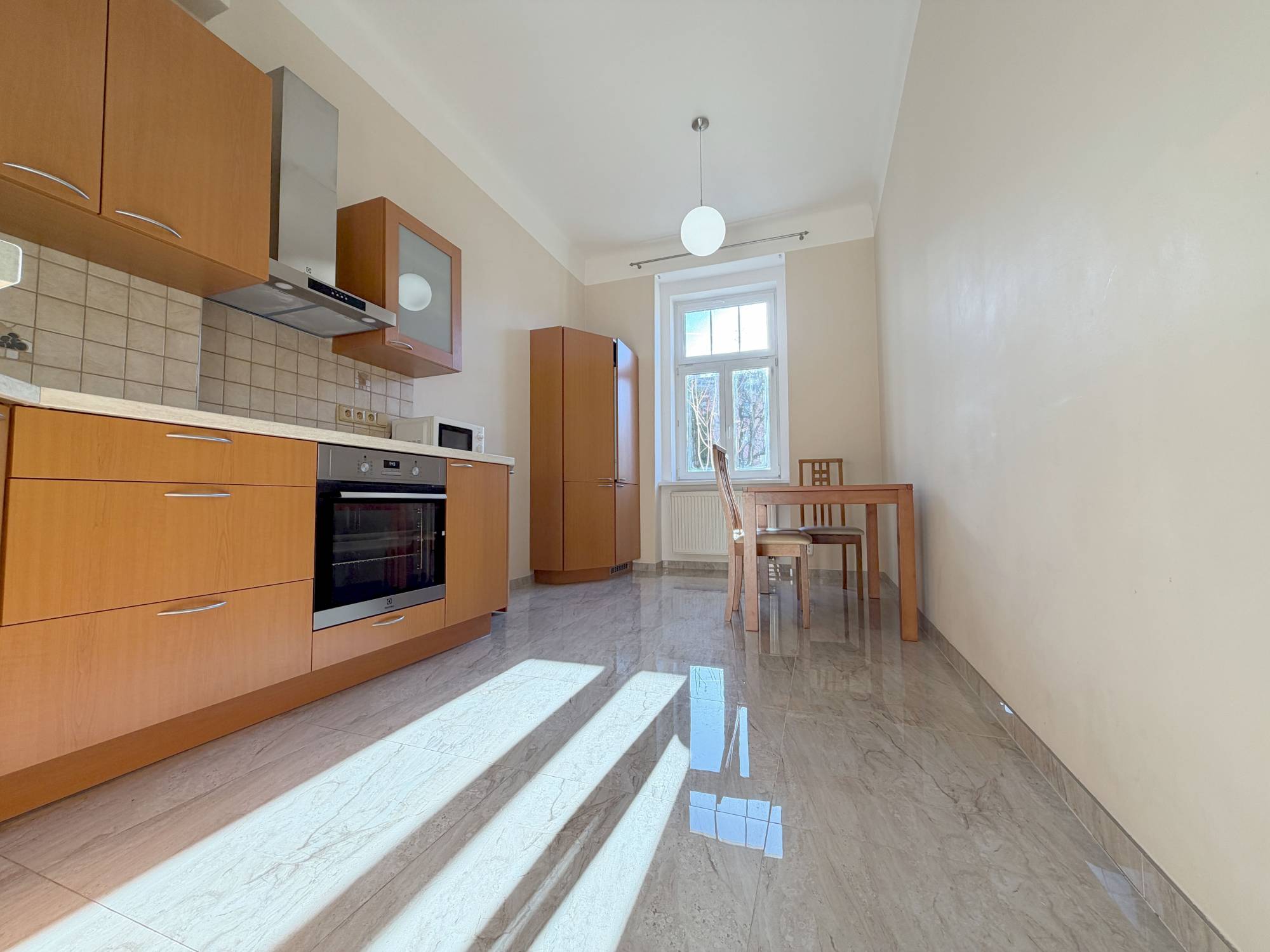 Nabízíme Vám pronájem světlého a prostorného bytu 1+1 o celkové ploše 53 m2 s neprůchozími místnostmi. Byt se nachází v 1. patře (2. NP) s výtahem do mezipatra, je částečně zařízený (možno i zařízený), po kompletní rekonstrukci. Ložnice i kuchyně jsou orientovány na jih a do vnitrobloku. Součástí bytu a stávajícího vybavení je kuchyňská linka, vestavný el. sporák se sklokeramickou varnou deskou, myčka nádobí, vestavná lednice s mrazákem, digestoř, pračka, sušička prádla, jídelní stůl a židle, šatní skříň, postel, noční stolky, komoda (vše viz foto). K dispozici je komora v bytě. Koupelna s vanou je společně s WC. Plochy místností jsou: ložnice 17,55 m2, kuchyně 14,08 m2, koupelna s WC 7,73 m2, předsíň 10,81 m2 a komora 2,66 m2. Na podlaze je plovoucí podlaha a dlažba. Internet a kabelovou TV je možno připojit od Vodafone/O2. Veškerá občanská vybavenost se nachází v docházkové vzdálenosti, 4 minuty chůze k metru A Jiřího z Poděbrad/Flora nebo OC Atrium Flora. Nabídka platí pouze pro nekuřáky bez psů a koček. Ihned volné k nastěhování s možností dlouhodobého nájmu a přihlášení se k trvalému pobytu.