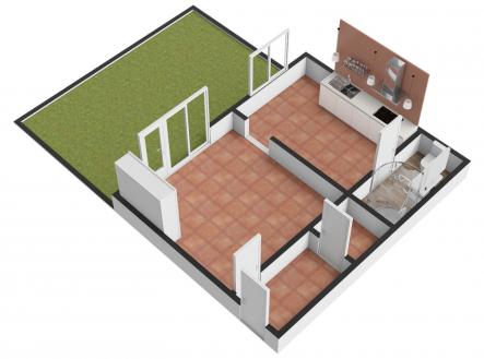 Pronájem bytu 1+1 s předzahrádkou, 37 m2, ul. Dandova, Praha 20 – H. Počernice.