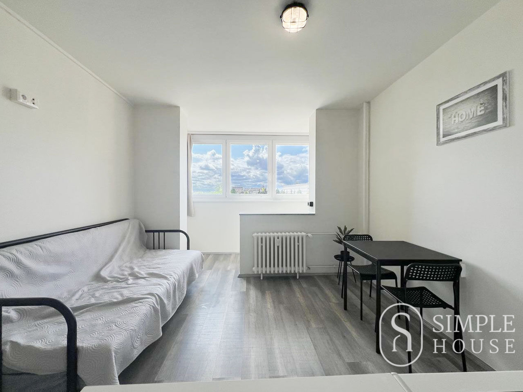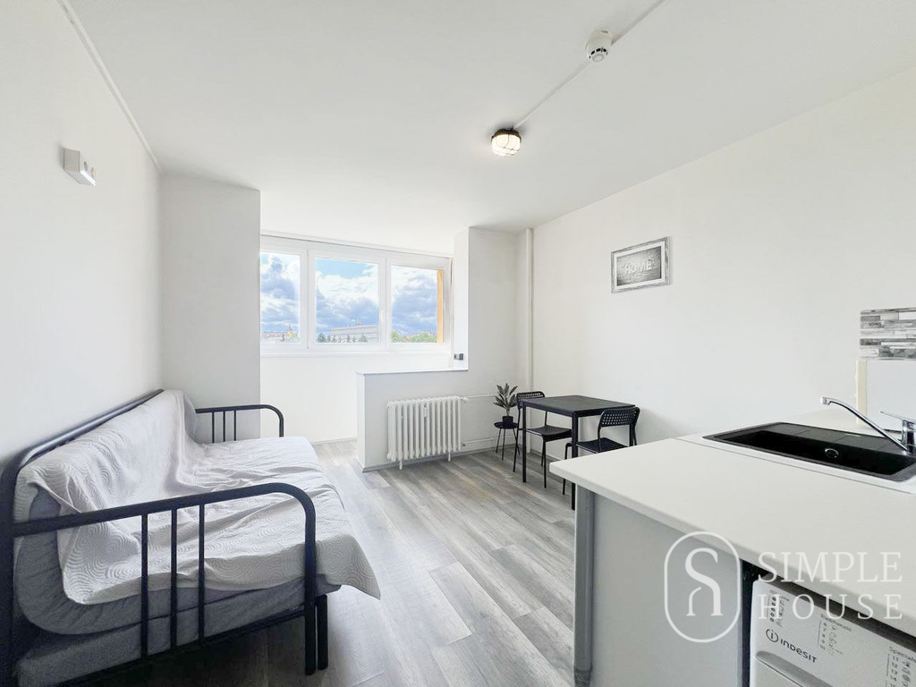 ID:G1090 Nabízíme ke dlouhodobému pronájmu slunný byt 1+kk o velikosti 25 m², který se nachází ve 4. patře moderního bytového domu s výtahem v klidné části Prahy 9 – Střížkov, ulice Děčínská. Byt je částečně vybavený a nabízí pohodlné bydlení pro jednotlivce nebo pár. Součástí vybavení je rozkládací pohovka, jídelní stůl se židlemi, pracovní stůl, šatní skříň a pračka. Díky orientaci je byt velmi světlý a působí vzdušně. Dům je vybaven recepcí a je plně zabezpečený. Nájemci mohou využívat společnou terasu s posezením a grilem. Možnost zajištění pravidelného úklidu jako doplňkové služby. Parkování je možné přímo před domem, kde je dostatek volných míst. Vynikající dopravní dostupnost – stanice metra C Střížkov je vzdálena jen několik minut chůze. V okolí je kompletní občanská vybavenost: supermarkety Lidl a Kaufland, restaurace, kavárny a večerka přímo v domě. Měsíční nájemné: 17 000 Kč + zálohy na služby 3 554 Kč + elektřina cca 600 Kč Vratná kauce: 17 000 Kč Byt je k dispozici ihned V případě zájmu nás neváhejte kontaktovat pro více informací nebo sjednání prohlídky.