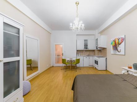 Od 13.3. k podnájmu plně zařízený byt o velikosti 32 m2 ve zvýšeném přízemí - pod okny je zahrada ve svahu tedy téměř první patro, orientován do ulice). Byt se skládá: - vstupní chodba - vestavná skříň + botník - koupelna s vanou, toaleta, pračka - hlavní obytná místnost s kuchyňskou linkou (myčka, malá lednice), skříně, postel (bez matrace), jídelní stůl, židle zůstávají. Bez domácích mazlíčků, vhodné pro 1 osobu. Poplatky spojené s užíváním bytu: 2 500 Kč + elektřina cca 750 Kč. Kauce dva měsíční nájmy včetně služeb. Provize jeden nájem. Podnájemní smlouva.