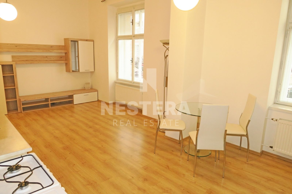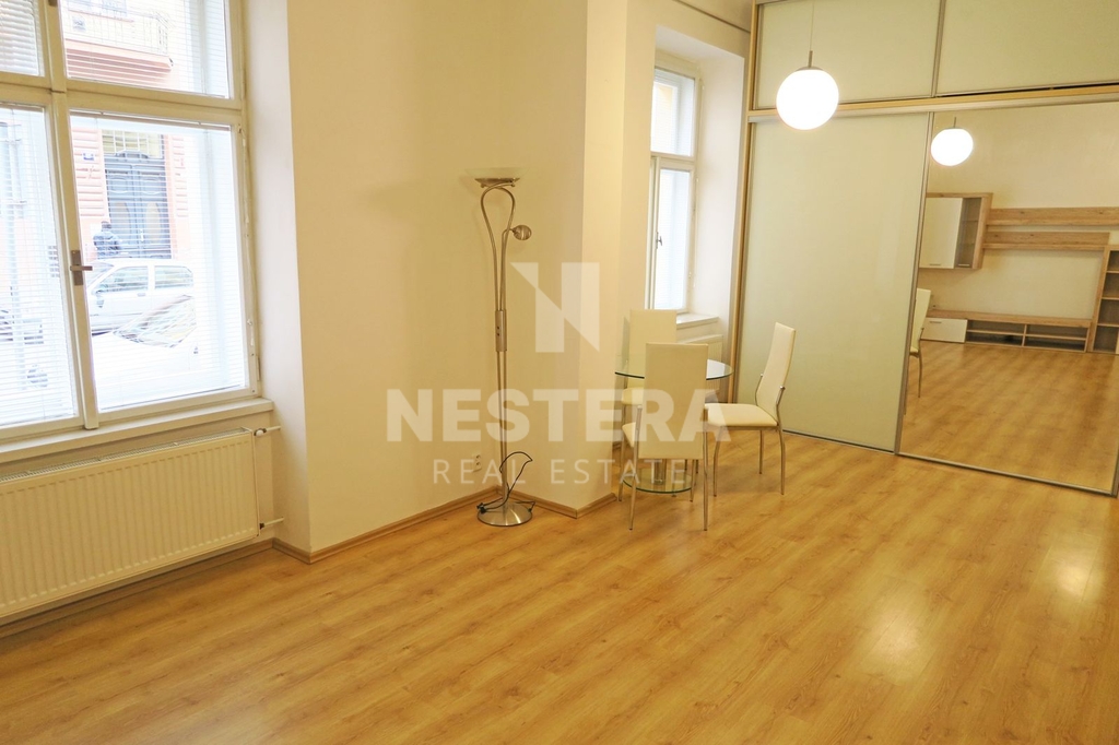 Pronájem pěkného, zrekonstruovaného a vybaveného bytu 1+kk | 37m2, který se nachází v přízemí secesního domu (okna do ulice) na perfektní adrese. Byt je dispozičně rozdělen na předsíň (botník, věšák), koupelnu se sprchovým koutem (skříňka, police, přípojka na pračku), samostatnou toaletu a pokoj s kuchyňským koutem (lednice, plynový sporák, trouba, velká vestavná skříň, jídelní stůl + 3 židle, lampa, obývací stěna, dvě postele s úložným prostorem a noční stolek). Vytápění a ohřev vody je řešeno plynovým kotlem Junkers s vlastní regulací a programovatelným termostatem. Převod odběru el. energie a plynu na nájemníka (plyn cca 1.500,-Kč/měsíc a elektrika cca 800,-Kč/měsíc). Měsíční poplatky pro dvě osoby včetně UPC internetu a televize 2.200,-Kč/měsíc (vodné, stočné, úklid domu, společná elektřina v domě, odvoz odpadu atd.). V okolí pražských Vršovic je veškerá občanská vybavenost. Nemovitost se nachází pár kroků od Vršovického náměstí nebo kultovní ulice Krymské. Skvělá dostupnost do centra Prahy (stanice MHD minutu chůze od domu). Kousek je to také do Havlíčkových sadů (Gröbovka), kde lze relaxovat nebo sportovat. Top 3: 1. Perfektní lokalita a dostupnost do centra města. 2. Krásný secesní dům. 3. Byt s kompletním vybavením. Pro více informací kontaktujte tým NESTERA.