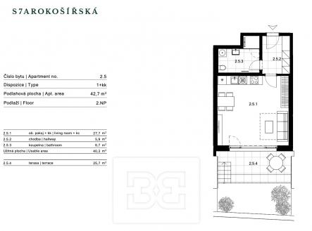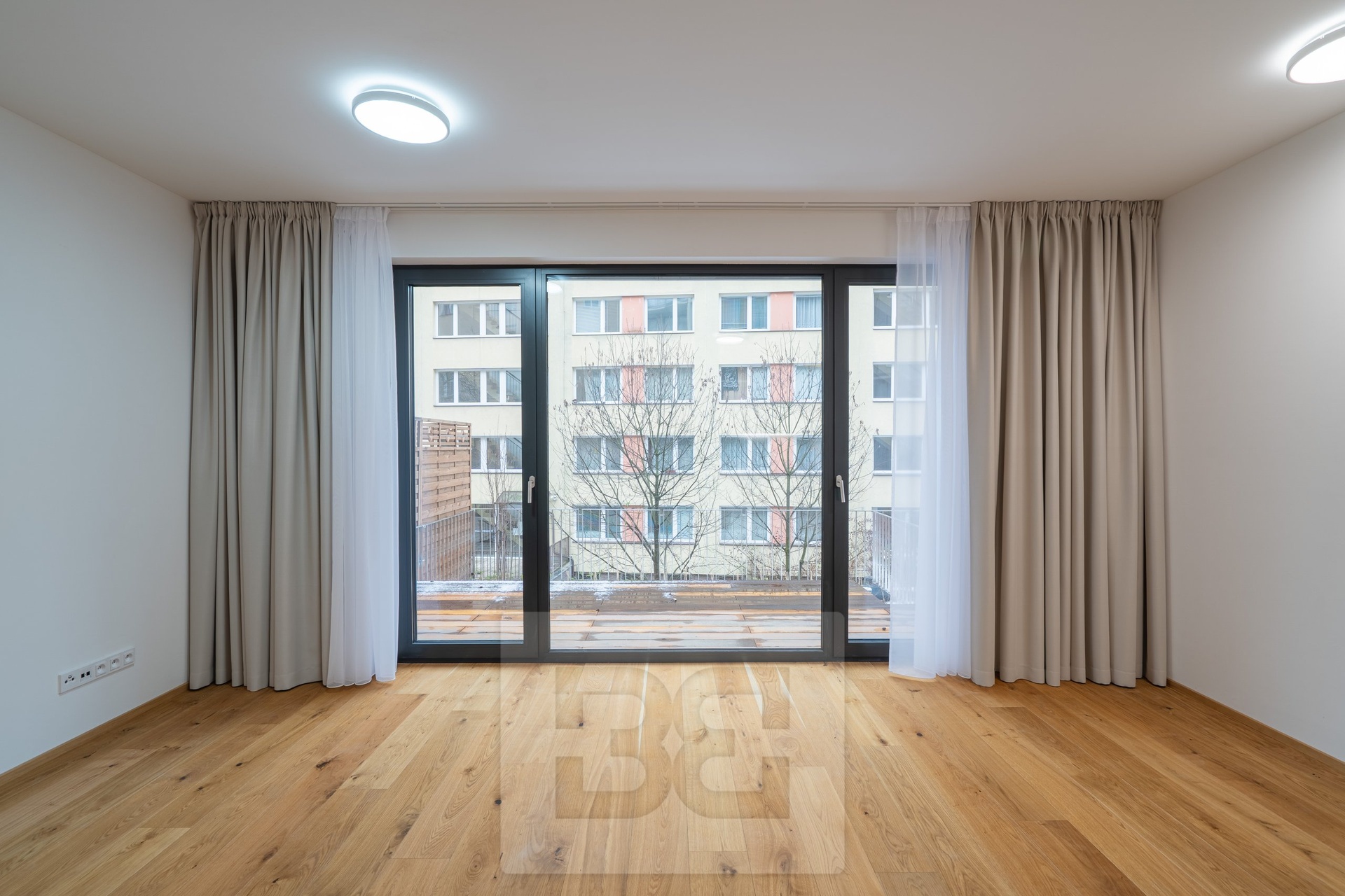 K nastěhování ihned. Nabízíme k pronájmu moderní prostorný byt o dispozici 1+kk a o výměře 43 m² s velkou terasou kombinovanou se zahradou o výměře 26 m². Byt se nachází ve 2. patře právě dokončené novostavby v atraktivní lokalitě Prahy 5 – Košíře, v rezidenčním projektu Starokošířská 7. Interiér je proveden ve vysokém standardu. Součástí bytu je moderní kuchyňská linka vybavená spotřebiči (myčkou nádobí, lednicí, digestoří, mikrovlnnou troubou a pečicí troubou). V celé místnosti jsou položeny krásné dřevěné podlahy, které podtrhují celkově kvalitní charakter interiéru. Velká okna s designovými závěsy zajišťují dostatek denního světla a příjemnou atmosféru. V předsíni je vestavěná prostorná skříň poskytující dostatek úložného prostoru. Lokalita nabízí veškerou občanskou vybavenost – obchody, restaurace, služby, poštu i lékárnu. V docházkové vzdálenosti se nachází tramvajová i autobusová zastávka. V blízkém okolí je rovněž široká nabídka volnočasových aktivit. Měsíční nájem - 23000 Kč, + zálohy na služby 4300 kč + elektřina (1000 kč), vratná kauce 29000 kč, provize 23000 kč + DPH. Velkou výhodou pro potenciální nájemce je, že byt je v profesionální správě společnosti Bohemian Estates, jenž správu pro majitele tohoto bytu vykonává. Nájemci je k dispozici kontaktní osoba, která obratem řeší veškeré záležitosti s nájmem spojené (pravidelná údržba i havarijní zásahy vlastními techniky, vyúčtování, dodatky, apod.). Nájemci je tak zajištěno bezproblémové užívání bytu s kompletním servisem.