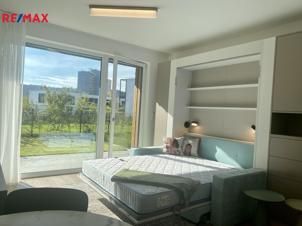 Exkluzivně nabízím pronájem skvostné bytové jednotky s podlahovou plochou 31,4 m² , terasou 8m² , předzahrádkou 8,5 m², garážovým stáním a sklepem v ulici Vrbová, Praha 4 - Braník. Byt se nachází v přízemí novostavby dokokončené v dubnu 2022 a disponuje obývacim pokojem s plně vybaveným kuchyňským koutem, vstupní chodbou, koupelnou se sprchovým koutem, WC a sklepem. Zařízení interiéru navržené architektem, který chytře využil každý prostor bytu, je vyrobené na míru. Nespornou výhodou je podlahové vytápění, rekuparece vzduchu a venkovní žaluzie. Výborné spojení do centra Prahy, bus zastávka "Branické náměstí" je vzdálena 400m od domu. V okolí veškerá občanská vybavenost. Volný je od 28.2.2026 a kauce činí dva měsíční nájmy. Pro další informace či zájem o prohlídku mne prosím kontaktujte.