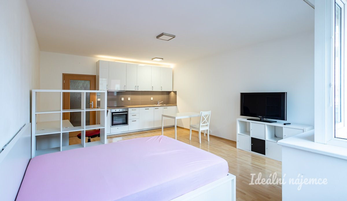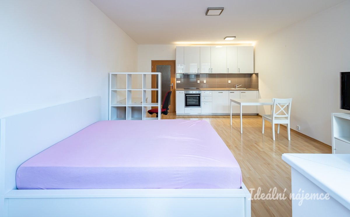 K dlouhodobému podnájmu nabízíme krásný byt o dispozici 1+kk v klidné lokalitě Praha-Kunratice. Byt o celkové výměře 42 m2 se nachází ve třetím podlaží cihlového domu z r. 2004 s výtahem. K bytu patří i balkon, komora a garážové stání (v ceně nájmu). Obyvatelům domu je k dispozici také kolárna. Byt se nabízí plně vybavený. Kuchyně disponuje lednicí, myčkou, elektrickou troubou, varnou deskou, mikrovlnnou troubou a digestoří. Obývací část je zařízena knihovnou, pracovním stolem s židlí a jídelním stolem s židlí, postelí s matrací a televizí. V koupelně je vana, umyvadlo, zánovní pračka a toaleta. V předsíni je skříň se zrcadlem, botník a věšák. V okolí domu najdeme prodejnu potravin, cukrárnu, restaurace atd. Pět minut chůze od domu je vzdálena autobusová zastávka IKEM (sedm minut jízdy na stanici metra Kačerov). V bezprostřední blízkosti domu se nachází Kunratický les, oblíbené místo pro snadno dosažitelnou relaxaci. Oblast Kunratického lesa je pro svoji polohu uprostřed zástavby přirozenou plochou sloužící ke sportovním aktivitám provozovaných na čerstvém vzduchu. Mezi nejčastější sportovní využívání patří turistika, kondiční běh a cyklistika, které jsou provozovány na vyznačených cestách. Lesem prochází značená cyklotrasa propojující Jižní Město a Braník. Na ni se napojuje krátká sdílená stezka od stanice metra Roztyly. V areálu lesa se vyskytuje i stádo muflonů a zookoutek. Majitel preferuje zájemce bez domácích mazlíčků. Byt je volný k nastěhování ihned.