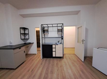 Nabízíme exkluzivně k pronájmu rekonstruovaný byt 1+kk o ploše 29,2 m2 v klidné lokalitě v ulici Pod radnicí, Praha 5 Košíře. Byt se nachází ve 2. nadzemním podlaží dobře vedeného cihlového domu. Bydlení s vynikající dopravní dostupností. Jedna velká světlá obytná místnost je rozdělena na část k odpočinku, obývací prostor a kuchyňský kout. Na něj navazuje koupelna se sprchovým koutem, toaleta je samostatná. Čtvercová předsíň. Byt se pronajímá s regálovou kuchyní, rohovými kuchyňskými skříňkami s policí, dvou- plotýnkovou varnou deskou, lednicí s mrazákem a dvoudílnou skříní. Plastová okna se žaluziemi směřují do klidného vnitrobloku se zahradou, kterou máte k dispozici. Slepá ulice s minimálním provozem zajišťuje tiché bydlení. Byt je vymalovaný, položena nová podlaha. Skvělá občanská vybavenost v blízkém okolí, 2 minuty obchod Lidl, pár minut pošta. Krásný park Klamovka, kde se skvěle najíte, ale i zrelaxujete po pracovním dni. Na tramvaj je to 3 minuty pěší chůze a na metro Anděl tramvají 2 stanice. Měsíční nájemné 14.500,-Kč + poplatky k bytu 1.200,-Kč (1 osoba). Elektřina se přepisuje na nájemníka. Internet optický kabel, není zahrnut v poplatcích. Kauce ve výši 10.000,- Kč. Vhodný jako startovací bydlení pro jednotlivce nebo pár. Volný ihned. Přijďte se podívat na prohlídku.