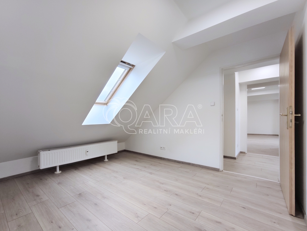 Hledáte příjemné bydlení se skvělou dopravní dostupností a perfektní občanskou vybaveností? Pak je pro vás zajímavou možností pronájem mezonetového bytu dispozice 2+1 o výměře cca 69 m2, umístěného ve třetím patře cihlového domu bez výtahu v Hanusově ulici v pražské Michli. Jak vidíte z fotografií, tak se jedná o půdní vestavbu, která bytu dodává jeho charakteristické kouzlo. Byt je vám k dispozici s výjimkou základní kuchyňské linky nezařízený, můžete si jej tedy vybavit podle vlastních představ. Pro kvalitu bydlení je kromě bytu jako takového důležitá i lokalita, která v tomto případě disponuje vším, co potřebujete. Na nedaleké Budějovické ulici se nachází na jedné straně obchodní centrum Arkády Pankrác či na opačné DBK. Ve stejném místě máte k dispozici také polikliniku. Široká síť restaurací kaváren a obchodů je rovněž vynikající. Prvotřídní je i již zmiňovaná dopravní dostupnost, kterou obstarává poblíž umístěná zastávka metra linky C - Budějovická a také autobusové spoje včetně nočních. V centru města na Václavském náměstí jste metrem za deset minut. Jako řidiči parkujete v okolí domu na modrých zónách a máte odtud bezprostřední nájezd na pražskou magistrálu s pokračováním na dálnici D1 či Jižní spojku. Poplatky za služby včetně vytápění i elektřiny v bytě jsou 6.250,- Kč pro jednu osobu či 7.950,- Kč pro osoby dvě. S ohledem na šikminy je byt určen nejvýše pro dvě osoby spíše menšího vzrůstu. A skvělé je, že nastěhovat se můžete ihned. Přijďte se sami podívat, jak vám byt i lokalita vyhovují.