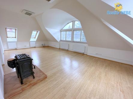 Nabízíme k dlouhodobému pronájmu byt 2+1, 82m2 ve 3NP cihlového domu se zahradou a bazénem. Možno využívat jako byt i nebytový prostor / atelier. Skládá se z velkého obývacího pokoje, ložnice a zařízené kuchyně (linka s el. vařičem, troubou, myčkou, lednice s mrazákem). Koupelna s vanou, sprchou a WC. Ostatní podlaží jsou využívána jako kancelářské prostory. K víkendovému užívání zahrada s možností bazénu. Volné k nastěhování ihned, o více informací a prohlídky volejte kdykoli.