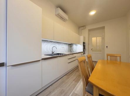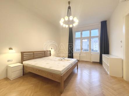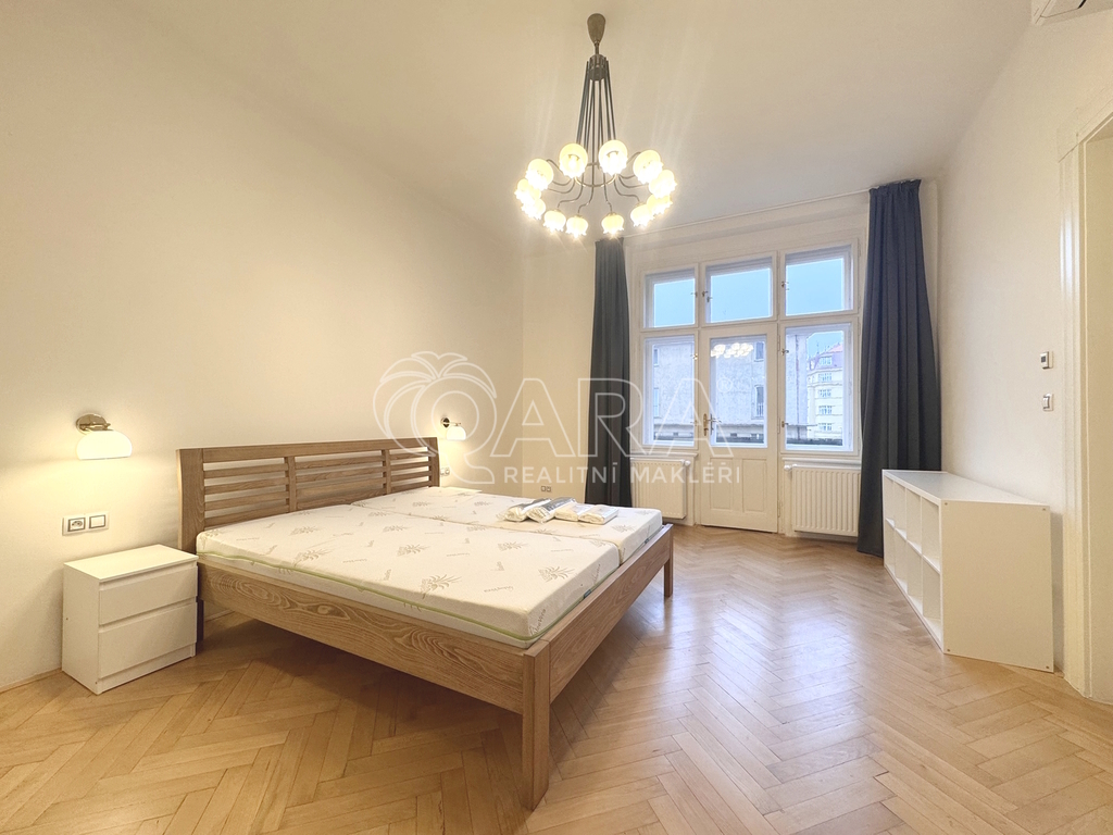 Zprostředkuji Vám pronájem prostorného a částečně zařízeného bytu dispozice 2+1, o výměře 90 m2, na pražských Vinohradech, v domě na rohu ulic Kolínská a Vinohradská. Tento krásný byt prošel před 3 lety kompletní, ale citlivou rekonstrukcí, původní prvky bytu tak zůstaly zachovány. Nově je také byt vybaven klimatizací. V bytě oceníte prostornou kuchyni, s krásnou kvalitní kuchyňskou linkou ve vyšším standardu, vč. vestavných spotřebičů. Dominantou bytu je rohový obývací pokoj, přístupný jak z kuchyně tak z ložnice. Ložnice je prostorná a kompletně vybavena nábytkem. Z ložnice je vstup na malý balkón. Oba pokoje mají dubovou parketovou podlahu. V koupelně je prostorný sprchový kout, WC s malým umyvadlem je umístěno samostatně. Součástí bytu je technická místnost s pračkou. Na vstupní předsíň navazuje prostorná hala, vybavená šatní skříní a botníkem. Vytápění a ohřev teplé vody v bytě zajišťuje kondenzační plynový kotel. Byt je situován ve 2. patře domu s výtahem a má okna jak do ulice Kolínské, tak i Vinohradské. V místě výborná dopravní dostupnost: zastávka tramvaje Radhošťská 1 minuta chůze, stanice metra Jiřího z Poděbrad či Flora (trasa A) cca 7 minut pěšky. Současně dobrá občanská vybavenost: OC Flora, kino, obchody, restaurace, fitness, plavecký bazén Olšanka v docházkové vzdálenosti. Na revitalizovaném náměstí Jiřího z Poděbrad možno navštívit sezonní trhy či kulturní akce. Byt je určen jednotlivci či páru k dlouhodobému pronájmu (min. 12 měsíců). Měsíční náklady: nájem + záloha na služby 1.500 Kč/osoba + přepis plynu a el. energie na nájemce. Jistota + odměna zprostředkovatele. NELZE na spolubydlení či krátkodobé pronájmy typu airbnb.