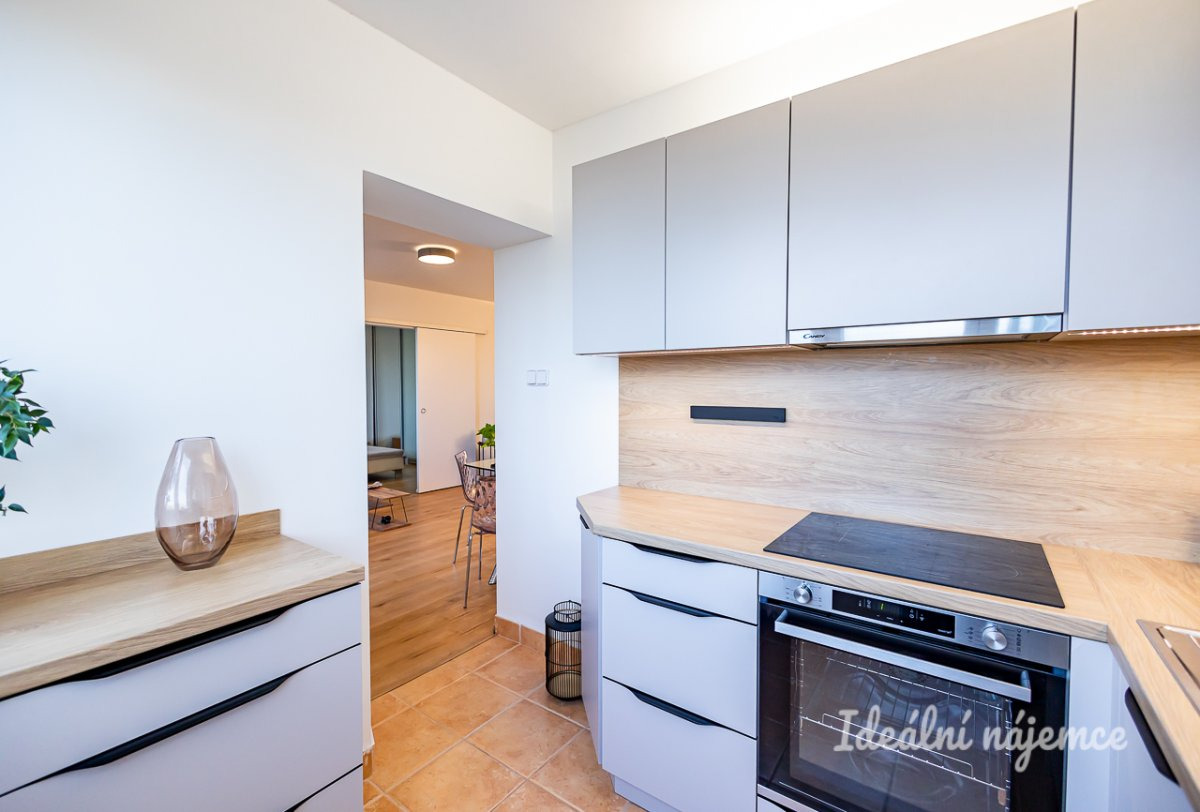 K dlouhodobému podnájmu nabízíme moderně zrekonstruovaný, ve vysokém standardu plně zařízený byt 2+1 s velkou lodžií orientovanou do vnitrobloku ve 3. patře udržovaného cihlového domu. Dům se nachází v klidné, a přesto dopravně perfektně dostupné lokalitě s vysokou kvalitou bydlení, nedaleko Pankráce, který je od domu jednu stanici metra. Pouhých 300m od od domu je vzdálena stanice metra C - Budějovická, kde je také OC DBK. Přímo před domem je také autobusová zastávka, ze které se za 12 minut jízdy autobusem dopravíte na Smíchovské nádraží nebo za minutu jízdy autobusem v Business Centru "Brumlovka". Byt s výměrou 49m2 tvoří vstupní chodba s nadstandartním množstvím úložného prostoru. Obývací pokoj se vstupem na velmi prostornou lodžii napojený na kuchyňský kout. Kuchyně vyrobena na míru je zařízena všemi vestavnými spotřebiči zn. Candy - vestavná trouba, indukční deska, mikrovlnná trouba, odtahová digestoř, myčka a volně stojící lednice. Na obývací pokoj navazuje ložnice vybavena velkou vestavnou šatní skříní, volně stojící skříní prostornou komodou a kompletní postelí. Zálohové platby už obsahují zálohy na elektřinu a pojištění domácnosti. Byt bude připraven k nastěhování od 01.10.2025