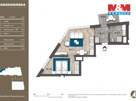 Pronájem bytu 2+kk, 43 m², Praha, ul. Starokošířská