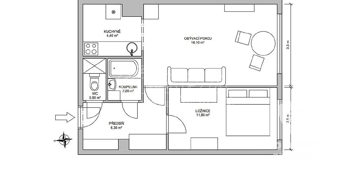 Pronájem bytu 2+kk, 43 m2 - Praha Háje
