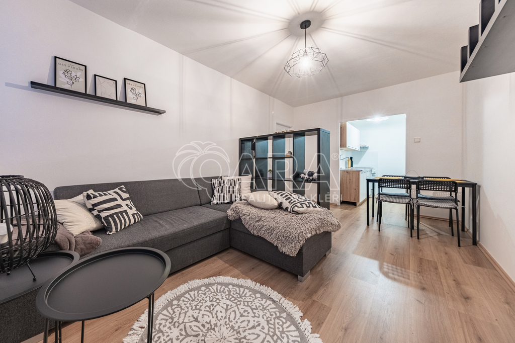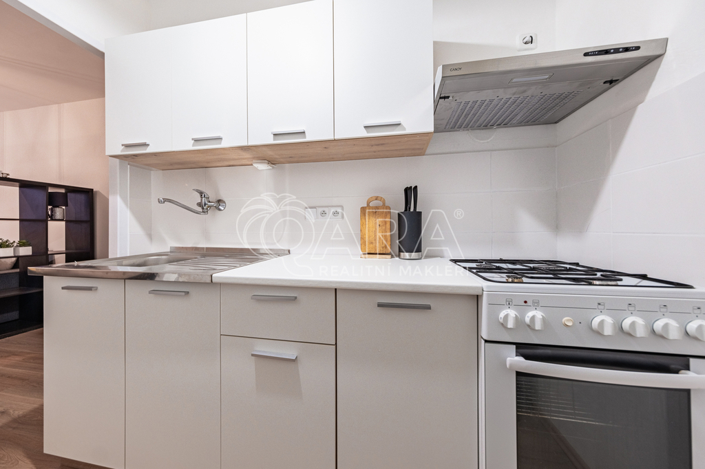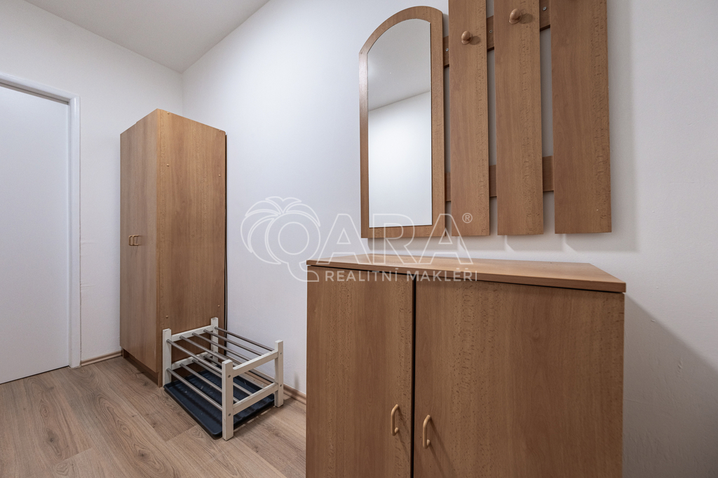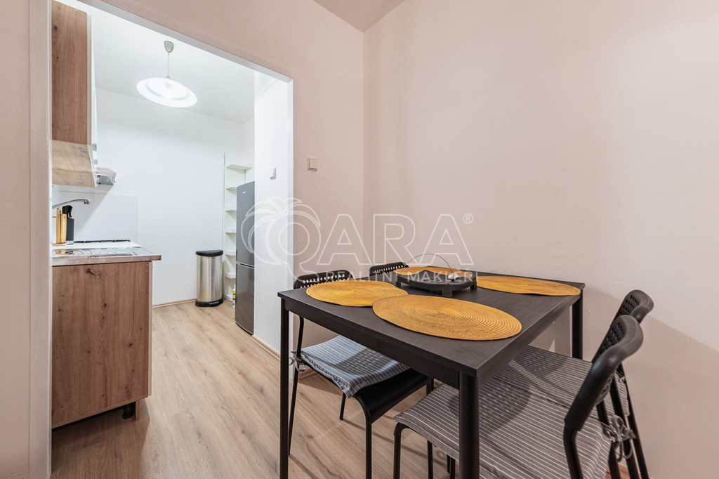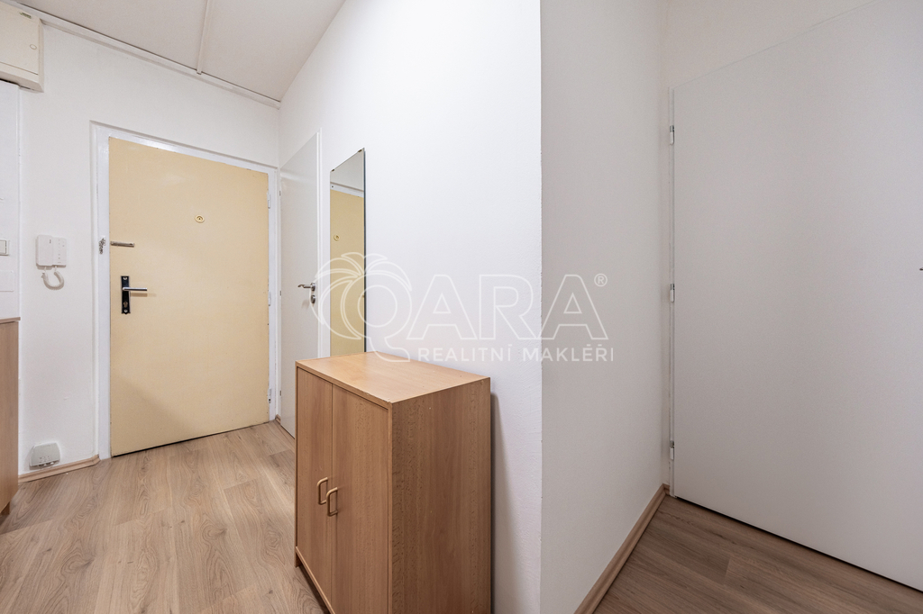 Nabízím k pronájmu pěkný nekuřácký byt po rekonstrukci v Praze Hájích dispozičně řešený jako 2+kk s užitnou plochou 43 m2. Byt se nachází v 9. patře s výtahem v pěkném, celkově revitalizovaném panelovém domě. Nově je zde vybudován bezbariérový přístup do domu. Byt prošel celkovou rekonstrukcí, zděné bytové jádro - koupelna s vanou a toaletou. Nová kuchyňská linka s plynovým sporákem a troubou, nová lednice s mrazákem. Nové plovoucí podlahy. Byt se pronajímá částečně zařízený. Z prostorné předsíně se vchází do všech místností v bytě. Koupelna je spojena s toaletou, vybavená je vanou a umyvadlem, zrcadlovou skříňkou, pračka k dispozici. Ložnice (12 m2) je vybavena postelí 160 x 200 cm a nočním stolkem. Dominantou je prostorný obývací pokoj (16 m2) propojený s útulným kuchyňským koutem. K dispozici je rozkládací sofa, TV, regály sloužící jako úložné prostory, jídelní stůl se židlemi. Kuchyňská linka je nová, disponuje velkým dřezem, novou lednicí s mrazákem, plynovým sporákem s troubou a digestoří. Pronájem činí 19.900,-- Kč měsíčně, veškeré služby včetně elektrické energie jsou 6.000,-- Kč/měsíčně. Vratná kauce pronajímateli činí 19.900,-- Kč, odměna zprostředkovatele je 19.900,-- Kč. Byt je volný od 1.3.2026. V případě zájmu o termín prohlídky mne kontaktujte telefonicky.
