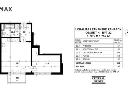 Pronájem bytu 2+kk, 54,2 m², OV, Praha – Letňany