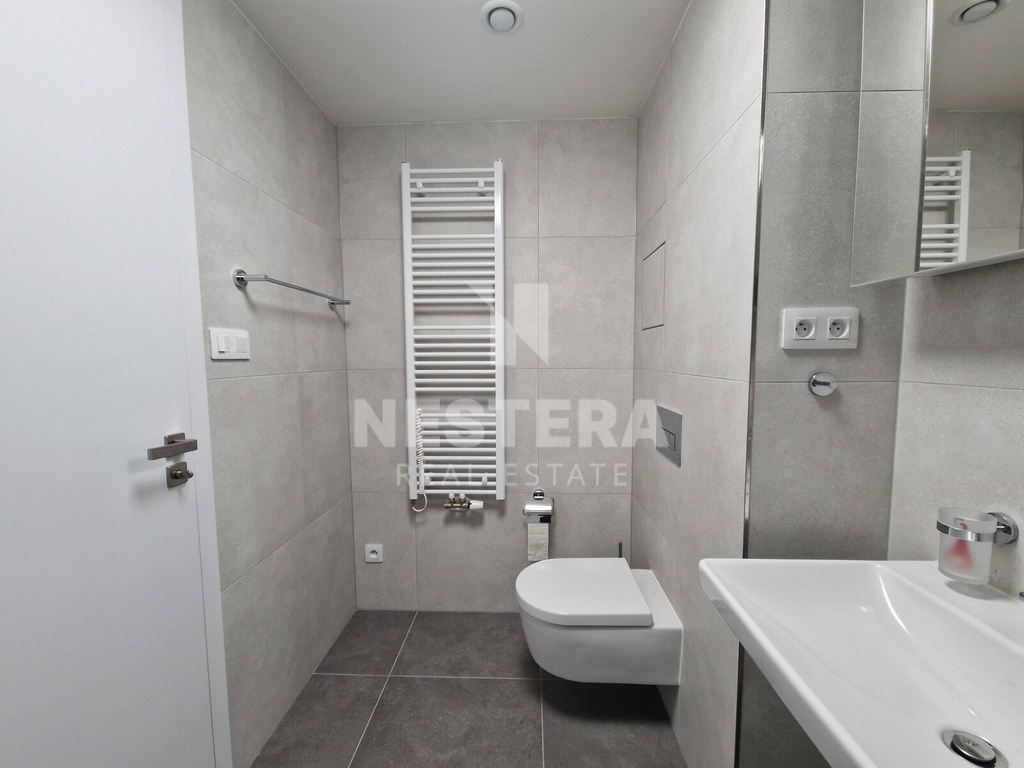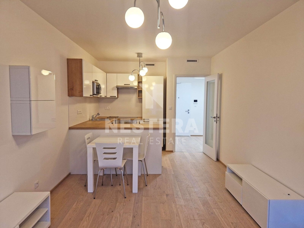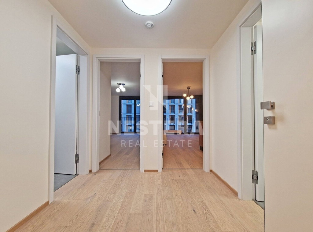 Pronájem krásného, zcela nového, bytu v 2+kk/balkon o podlahové ploše 56 m2 s garážovým stáním a sklepem v projektu Smíchov City od developera Sekyra Group. Byt je vybaven ve vysokém standardu. Jeho součástí jsou dřevěné podlahy, keramické obklady a dlažba, okna s izolačním trojsklem, rekuperační systém. Je rozdělen na prostou předsíň, ze které jsou přístupné všechny místnosti. Nechybí obývací pokoj s kuchyňským koutem, ložnice, koupelna s toaletou a komora. Orientace bytu je na východní stranu do pěší zóny ulice Albrightové. Součástí bytu je balkon o velikosti 3,6 m2 a sklepní kóje. Velkou předností je také garážové stání ve druhém podzemním podlaží (s poplatkem 1.500,- Kč/měsíc). Projekt Smíchov City je dosud největší projekt v moderních dějinách Prahy, který sklidil pozitivní ohlasy i od komisařů UNESCO. Každá z budov v rámci klasických obytných bloků má vlastní typologii a podobu. Na projektu se podílela řada známých tuzemských i zahraničních architektů. Budova, v níž se byt nachází, je přímo u stanice metra linky „B“ Anděl, zastávky tramvaje Na Knížecí a pár minut chůzí od Smíchovského nádraží, ze kterého vznikne jeden z největších dopravních terminálů v Praze. Lokalita má veškerou občanskou vybavenost jako školy, školky, lékaře, supermarkety, restaurace, lékárny atd. Poplatky za služby 4.800,- Kč/měsíc, vratná kauce 50.000,- Kč, poplatek realitní kanceláři jeden měsíční nájem + DPH. Pro více informací kontaktujte tým NESTERA.