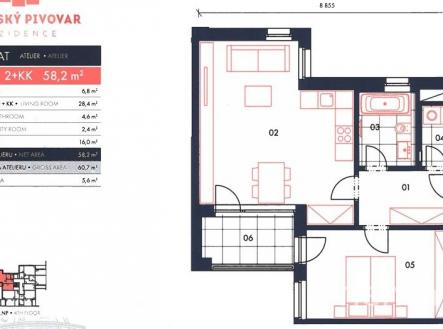 Pronájem bytu 2+kk 61 m² + krytý parking + sklep