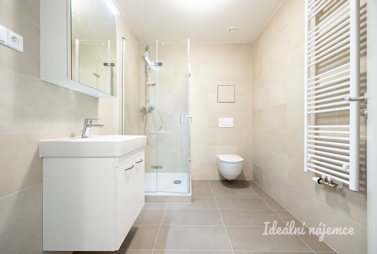 K dlouhodobému podnájmu Vám nabízíme krásný, zcela nový byt o dispozici 2kk o výměře 53m2 s vlastním garážovým stáním a balkonem. Byt se nachází ve 2. patře novostavby cihlového domu v nové, velmi žádané lokalitě pražských Vysočan, jen pár kroků od stanice metra B Kolbenova a stejnojmenné tramvajové zastávky. Díky vestavným šatním skříním a komoře disponuje byt velkým množstvím úložného prostoru. Skládá se ze vstupní chodby zařízené vestavnou šatní skříní, komory, koupelny společné s toaletou, zařízené sprchovým koutem, přípojkou na pračku a umyvadlem. Z prostorného obývacího pokoje a ložnice, která je vybavena vestavnou šatní skříní lze vejít na západně orientovaný balkón. Nová kuchyňská linka je zařízena všemi spotřebiči - vestavná lednice, myčka, varná deska, trouba a odtahová digestoř. K bytu náleží garážové parkovací stání v ceně 2.000,-Kč/měsíc. Pro sportovní vyžití můžete využít oblíbenou cyklostezku údolím říčky Rokytky a park Zahrádky, který je od domu necelých 100m. Byt je k dispozici od 1.4.2026. Zálohové platby už obsahují zálohy na elektřinu a pojištění domácnosti.