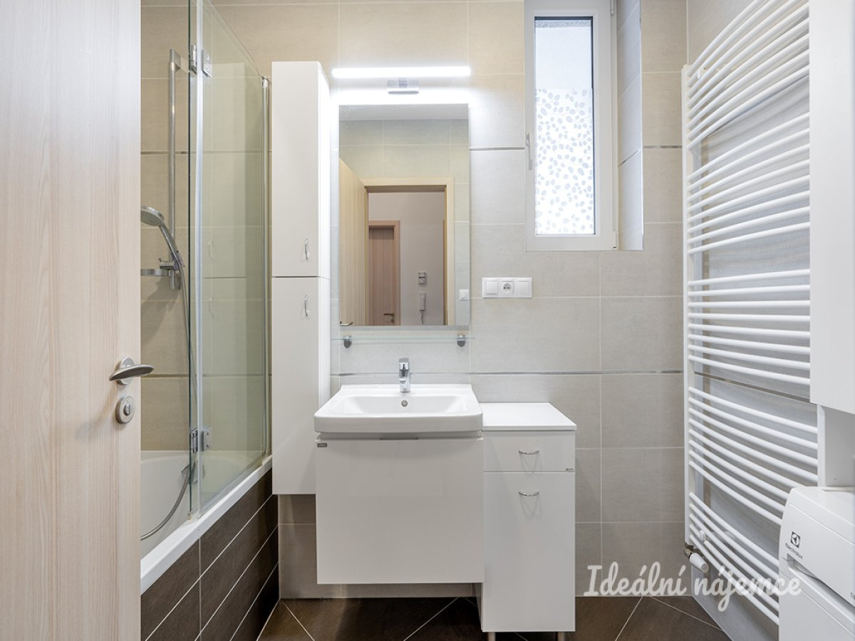 K dlouhodobému podnájmu Vám nabízíme kompletně zařízený byt s komorou, zasklenou lodžií a garážovým parkovacím stáním. Byt je situován v 1.patře udržovaného cihlového domu s výtahem, ve velmi klidné pražských Stodůlek - Velká ohrada. Skládá se ze vstupní chodby, samostatné toalety, koupelny zařízené vanou, pračkou, umyvadlem a velkým zrcadlem. velmi prostorná komora je vybavena regály. Z ložnice, která je zařízena postelí a dvěma šatními skříněmi lze vejít na zasklenou lodžii. Obývací pokoj, společný s kuchyňským koutem je kompletně zařízen a lze z něho vejít na lodžii. Kuchyně je vybavena všemi spotřebiči - lednice, myčka, varná deska a digestoř. K dispozici může být i kávovar. K bytu náleží garážové parkovací stání. Dům se nachází v lokalitě, která je ideální pro rodinné bydlení. Přímo u domu je hned několik základních i mateřských škol. Dále je tu několik menších obchodů s potravinami a službami, hypemarket Albert a Lidl. Autobusová zastávka "Velká ohrada" je od domu necelé 3 minuty chůze. Byt je k dispozici od 1.3.2026. Zálohové platby už obsahují zálohy na elektřinu a pojištění domácnosti.