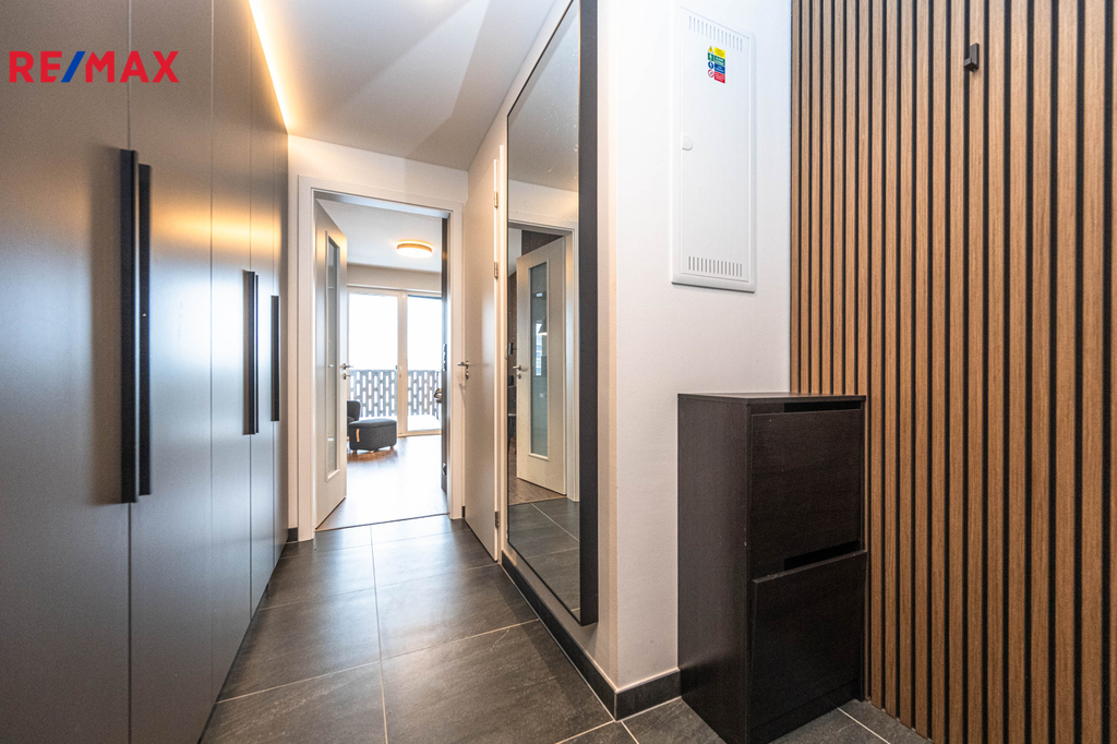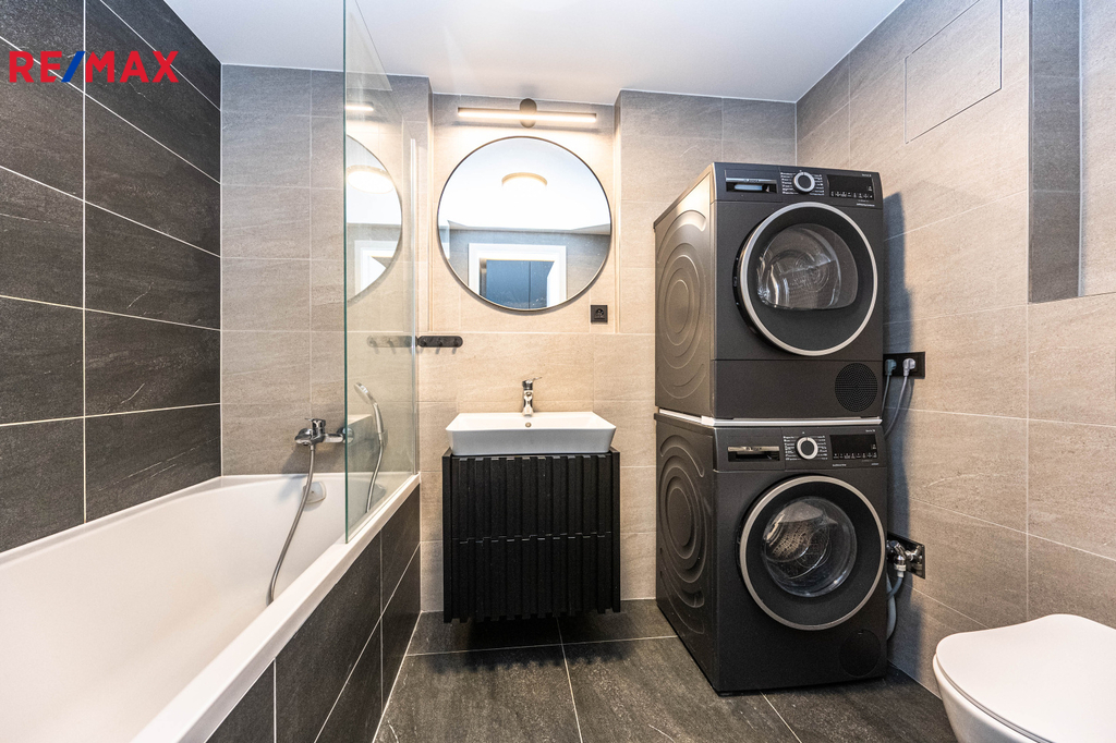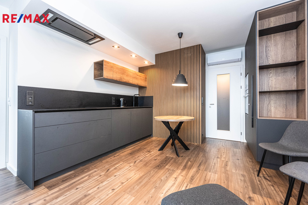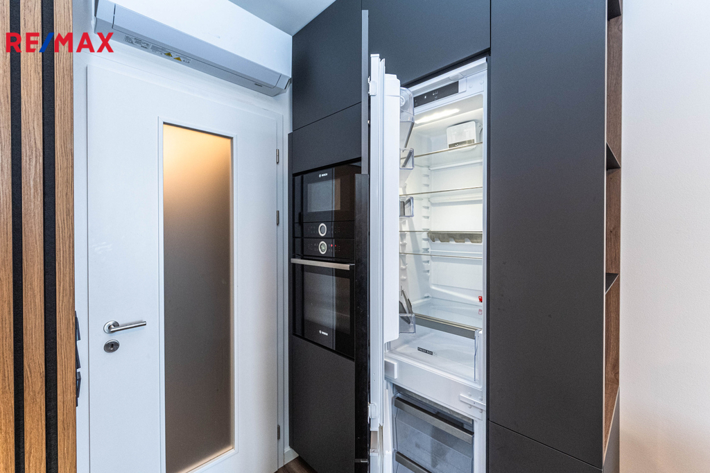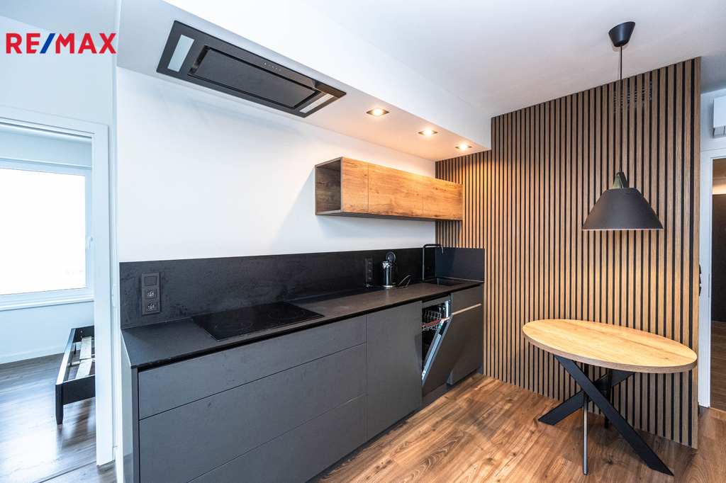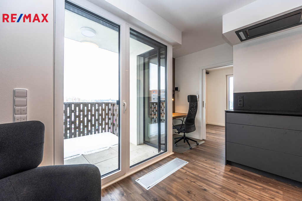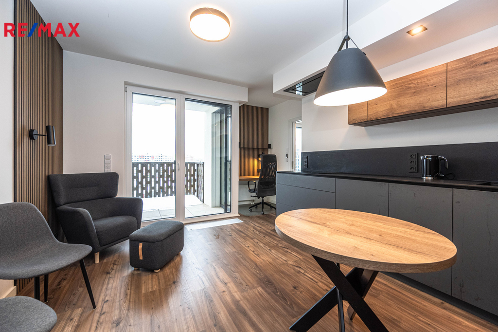 Nabízím Vám pronájem designově řešeného bytu 2+kk s lodžií a parkovacím stáním v rezidenčním projektu „Alfa Residence“, kolaudační rozhodnutí je z 10/2023. Byt je v osobním vlastnictví, podlahová plocha bytu činí 42,5m2 + lodžie 5,2m2. Byt se nachází se v 10.NP z 10.NP. Byt je orientován na severozápad a lodžie skýtá volný výhled. Dispozice bytu: obývací pokoj s kuchyňským koutem, ložnice, vstupní hala, koupelna s vanou a toaletou. Byt se pronajímá částečně zařízený. Design bytu byl řešen ve spolupráci s architektem. Ve vstupní hale je skříňová sestava, v obývacím pokoji pracovní kout. Kuchyňská linka je zhotovena na míru a je vybavena vestavěnými spotřebiči: indukční varná deska, digestoř horkovzdušná trouba, mikrovlnná trouba, chladnička s mrazákem, myčka 45. V ložnici je postel. Koupelna má vanu a toaletu a disponuje sušičkou a pračkou. V obývacím pokoji a v ložnici jsou laminátové podlahy. V hale a dále v koupelně s toaletou je dlažba. V bytě jsou moderní osvětlovací tělesa. Okna jsou plastová, mají více komorový plastový rám s trojsklem a jsou opatřená venkovními roletami - AL lamelová žaluzie v systémovém skrytém podomítkovém boxu, el. ovládaná. Vchodové dveře bezpečnostní, protipožární, akustické, falcové. Byt je vybaven klimatizací, přičemž obývací pokoj i ložnice mají každý svoji vlastní klimatizační jednotku. K dispozici je venkovní parkovací stání. Internetové připojení zajišťuje firma Cetin. Datové rozvody jsou v obývacím pokoji i v ložnici, je možné napojit operátora dle vlastního výběru. V domě jsou dva výtahy. V přízemí domu jsou k dispozici delivery boxy pro pohodlný příjem vašich zásilek. Lokalita je s velmi dobrou dopravní dostupností, metro B – Luka cca 2 min. pěší chůze od domu a v areálu vstupu navazuje Obchodní centrum Luka, kde najdete hned několik supermarketů jako Albert, Tesco, Penny, takže než půjdete domů, můžete si pohodlně nakoupit. Samozřejmostí jsou restaurace, banka atd. a také např. posilovna. Jen pár minut pěší chůze je rozsáhlý Centrální park, skýtající skvělé podmínky pro Vaše různé volnočasové aktivity od běhání, jízdy na kole, na kolečkových bruslích, minigolfu, volejbalu atd. Skvělá dostupnost je i na letiště Václava Havla. Cena pronájmu bytu včetně parkovacího stání činí 22.500 Kč + 4.027 Kč zálohy na služby/měsíc + elektřina dle spotřeby. Volný ihned! Byt je vhodný pro dlouhodobý pronájem. Majitel si vyhrazuje právo vybrat si nájemce dle svého uvážení. Uvedené informace mají pouze informativní charakter a mohou se v průběhu inzerce změnit.