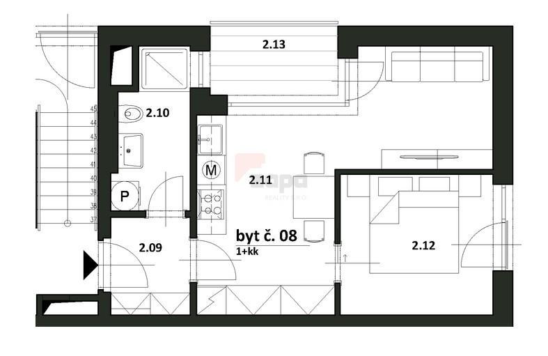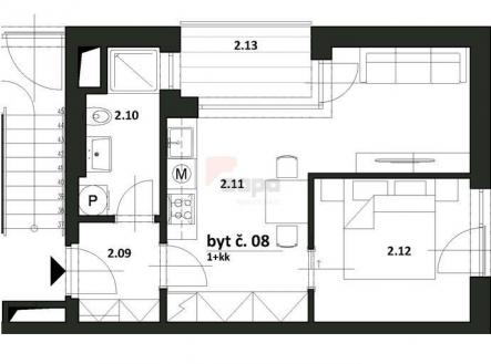 Pronájem bytu 2+kk/L/G 44 m2 v novostavbě, Praha 8 Bohnice, nezařízeno