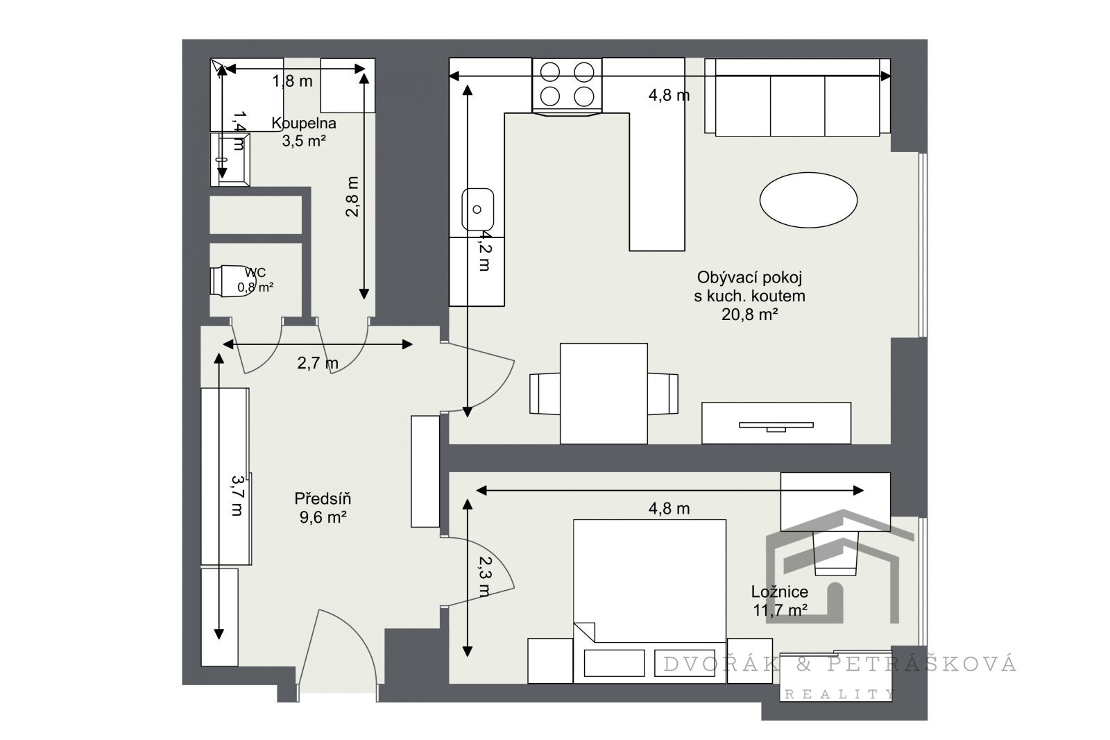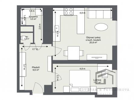Realitní společnost Dvořák & Petrášková reality vám nabízí k pronájmu byt v osobním vlastnictví o dispozici 2+kk na pražském Břevnově, na adrese Nad Kajetánkou 207/21. Neplatíte provizi RK. Nově zrekonstruovaný byt s podlahovou plochou 45 m2 se nachází ve 4.patře cihlového domu s výtahem. Byt prošel nákladnou rekonstrukcí a je vhodný pro jednotlivce nebo pár. Bytová jednotka disponuje prostornou vstupní chodbou s dostatkem místa na šatní skříně a oddělenými vstupy do jednotlivých pokojů. Obývací pokoj s kuchyňským koutem je vybavený vestavnou lednicí s mrazákem, myčkou, horkovzdušnou troubou, indukční varnou deskou, digestoří a dostatkem úložného prostoru. Ložnice s výměrou 12 m2 a přístupem z chodby, koupelna se sprchovým koutem a připojením na pračku, toaleta je oddělená. Použitý nábytek je pouze ilustrační a není součástí pronájmu ani jej nelze ponechat. Byt prošel kompletní rekonstrukcí, na podlahu byla položená vinylová podlaha a byt je kompletně bez prahový, v pokojích jsou umístěna plastová okna s žaluziemi. Ohřev vody a teplo dálkově z teplárny. Byt je volný k nastěhování. Parkování je možné před domem, na modrých zónách. Zastávka autobusu Patočkova je umístěna kousek od domu, tramvaj pěší chůzí 5 minut, základní školy v okolí, oblíbený park Kajetánka a koupaliště Petynka přes silnici, supermarket Albert 10 minut pěšky. Měsíční náklady na bydlení jsou: -nájemné 24.000,– Kč, -zúčtovatelné zálohy na služby pro 1 osobu cca 2.400,– Kč (přesná částka pro 2 osoby bude přepočítaná na základě nového evidenčního listu), -zálohy na odběr elektřiny cca 1.200,– Kč (smlouva na nájemce). Vratná kauce 48.000,– Kč, splatná při podpisu rezervační smlouvy. Nájemné na daný měsíc se hradí v daném měsíci. Neplatíte provizi. Nájemce vždy prověřujeme, majitelé nabízí férové jednání. Byt je určený výhradně k dlouhodobému pronájmu a max. pro 2 osoby. Byt není vhodný pro spolubydlení. Preferujeme nájemce bez domácích mazlíčků. Ráda se s Vámi uvidím na prohlídce.