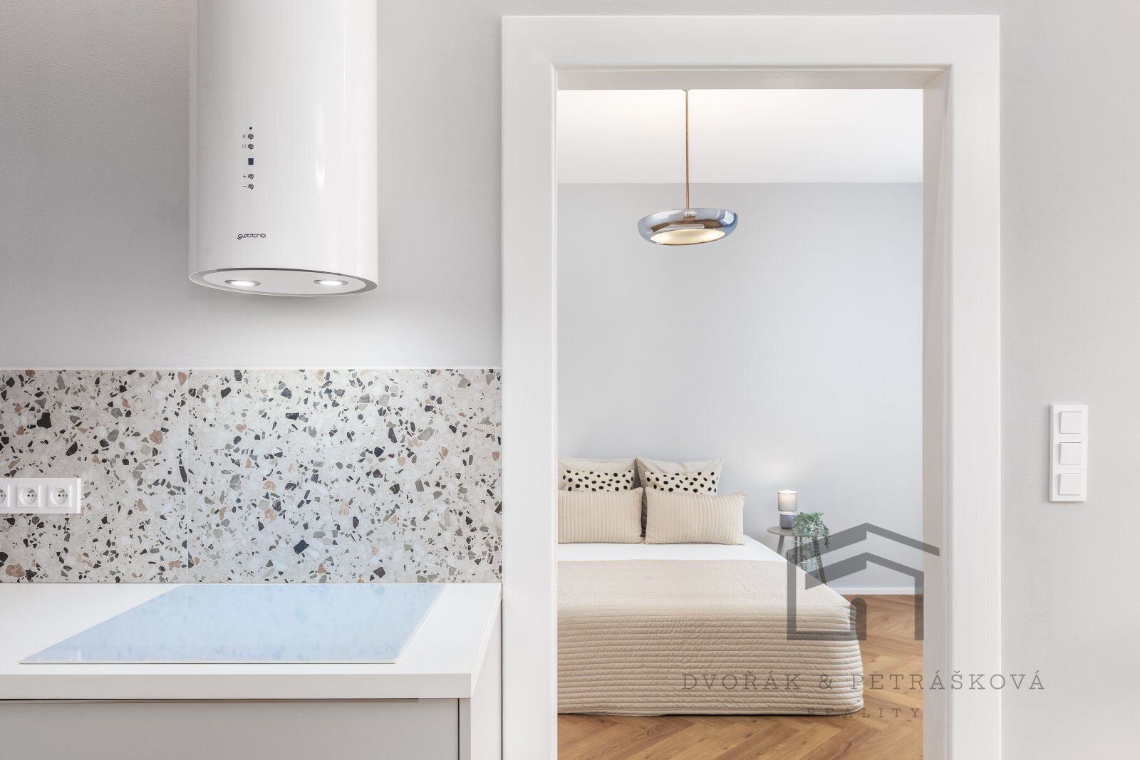 Realitní společnost Dvořák & Petrášková reality vám nabízí k pronájmu nadstandardní byt v osobním vlastnictví o dispozici 2+kk, na adrese Černokostelecká 1151/60, Praha Strašnice. Neplatíte provizi RK. Nově zrekonstruovaný byt byl navrhnutý architektkou a je vhodný i pro náročné klienty, dokonale plní estetickou a praktickou funkci. Byt se nachází ve 2.NP cihlového domu s výtahem a disponuje vstupní chodbou s vestavěnými úložnými prostory, místem na pračku, vstupem na samostatnou toaletu, do koupelny a hlavního pokoje. Obývací část (19 m2) s designovým kuchyňským koutem, který je vybavený vestavnou lednicí s mrazákem, elektrickou horkovzdušnou troubou, varnou deskou, závěsnou digestoří, myčkou a dostatkem úložného prostoru. Dále je zde místo na jídelní stůl, sedací soupravu a televizi. Ložnice o 19 m2, do které se pohodlně vejde manželská postel, šatní skříň i pracovní stůl, je přístupná z obývacího pokoje. Koupelna disponuje sprchových koutem walk-in, umyvadlem s podomítkovou baterií, zrcadlem s LED osvětlením a skříňkou. Byt prošel kompletní a velmi nákladnou rekonstrukcí. Na podlaze je umístěná dlažba (chodba, koupelna a toaleta), v pokojích byla položena kvalitní vinylová podlaha. Vytápění bytu je podlahové a můžete si jej v pokojích různě regulovat. Ohřev vody zajišťuje elektrický boiler. Okna jsou umístěna do boční ulice. Byt se pronajímá bez nábytku, který slouží pouze k představě. Byt je volný k nastěhování a je vhodný pro 1-2 osoby. Součástí bytu je sklepní kóje. Parkování je možné před domem, na modrých zónách. Zastávka tramvaje je umístěná hned naproti domu, která vás do 10 minut doveze na stanici metra Strašnická. V blízkosti je fakultní nemocnice Vinohrady. Z obchodů je nebližší supermarket Albert a hypermarket Tesco Skalka. Dále například oblíbené fitness centrum Form Factory, restaurace a kavárny. Měsíční náklady na bydlení jsou: -nájemné 24.000,– Kč, -zúčtovatelné zálohy na služby pro 1 osobu 440,– Kč (přesná částka pro 2 osoby bude přepočítaná na základě nového evidenčního listu), -zálohy na odběr elektřiny cca 2500,– Kč (smlouva na nájemce). Vratná kauce 48.000,– Kč, splatná při podpisu rezervační smlouvy. Nájemné na daný měsíc se hradí v daném měsíci. Neplatíte provizi. Byt je určený výhradně k dlouhodobému pronájmu. Preferujeme nájemce bez domácích mazlíčků. Ráda se s Vámi uvidím na prohlídce.