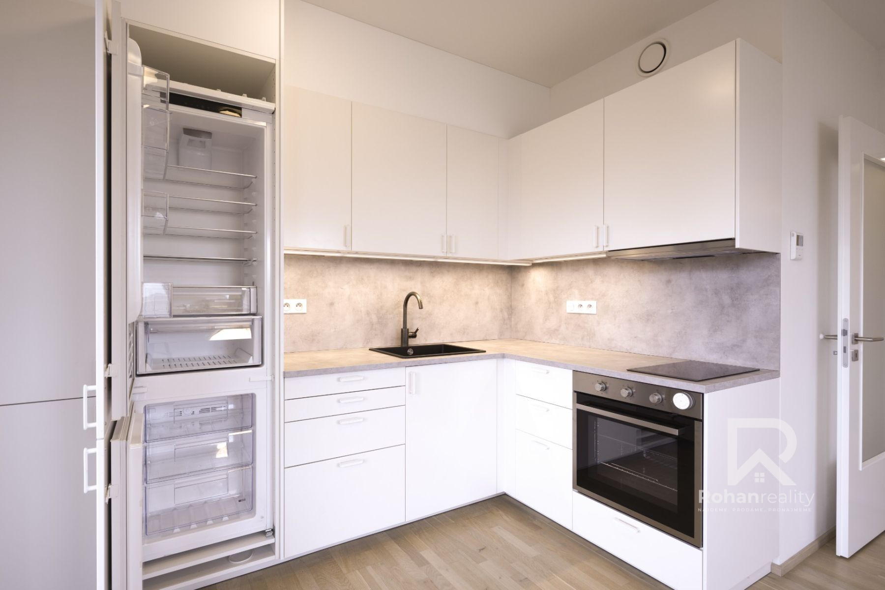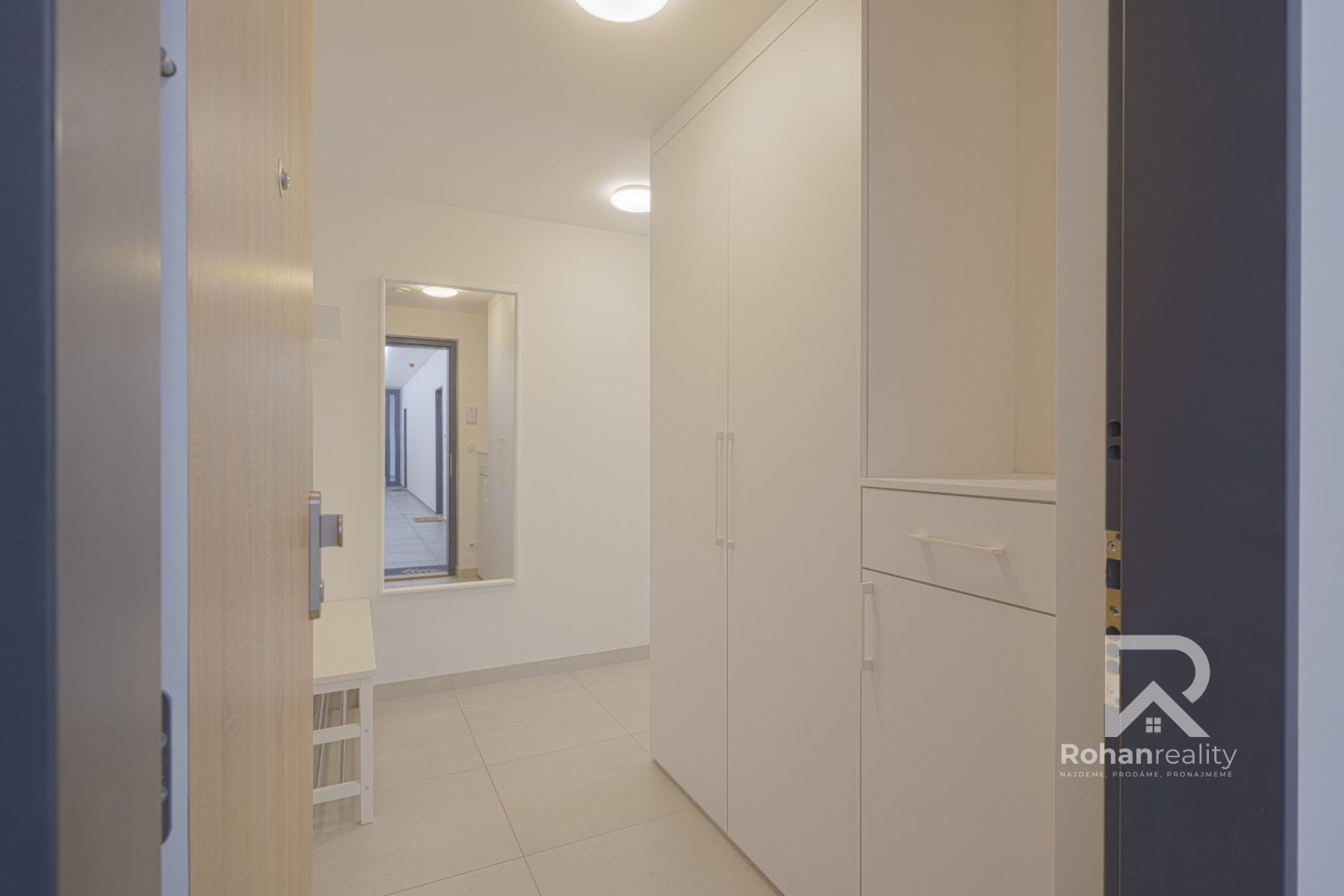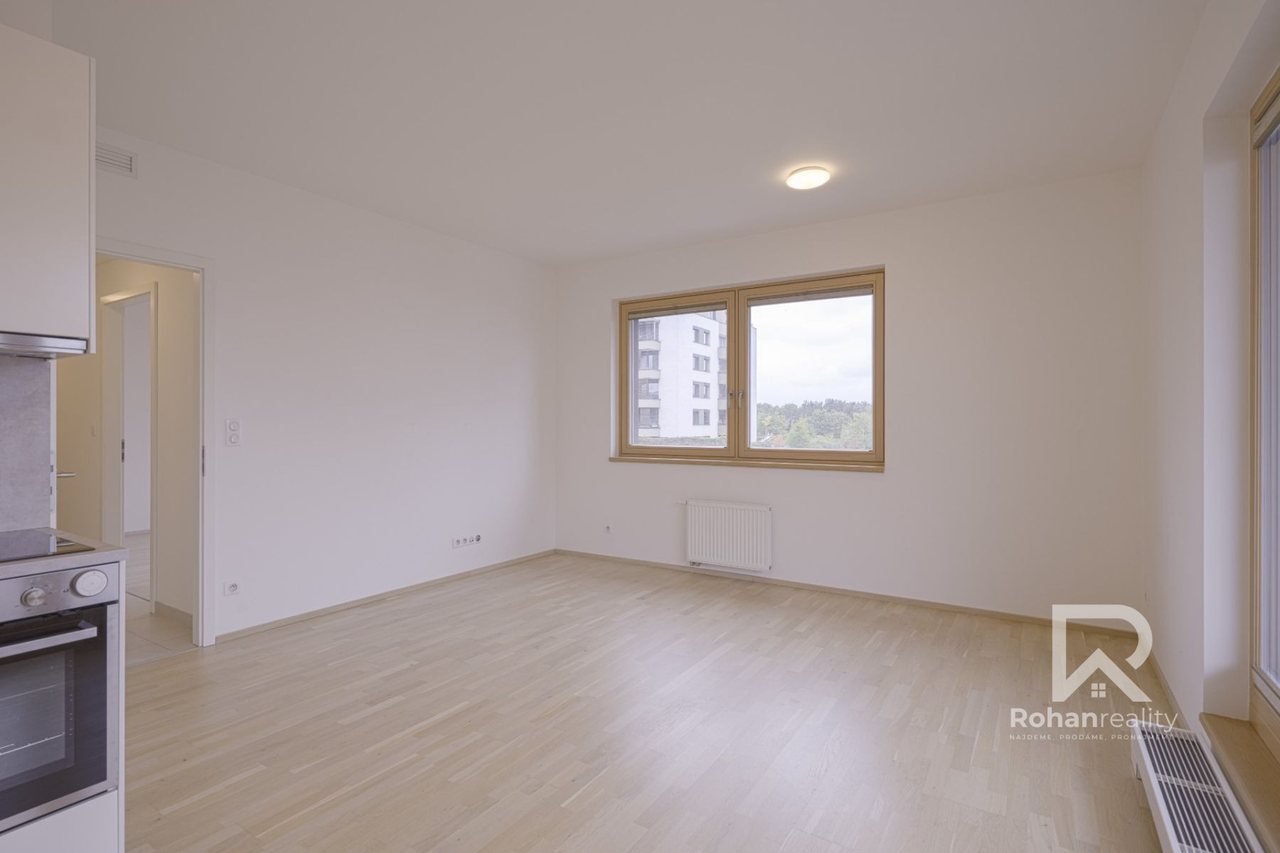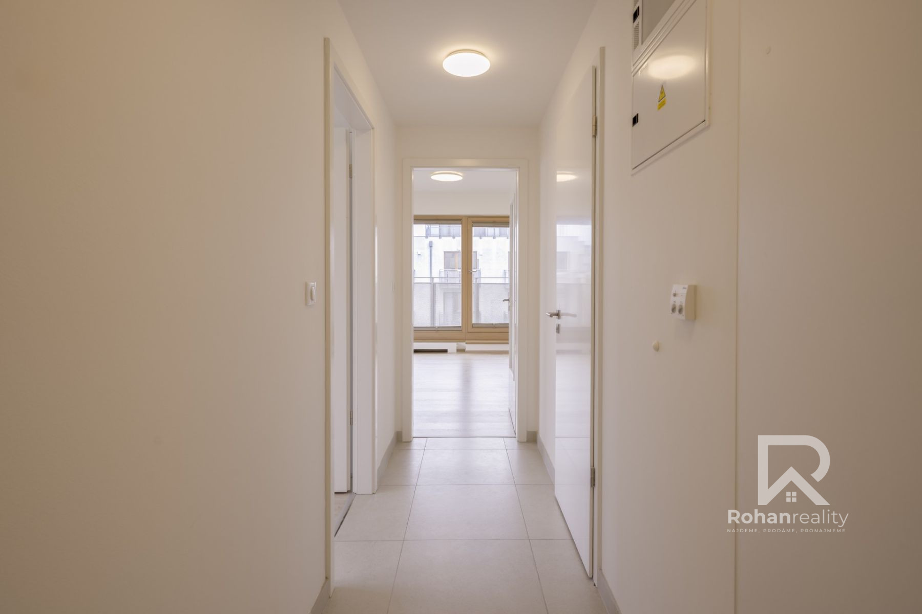 Nabízíme Vám k dlouhodobému pronájmu moderní byt 2+kk, 50,6 m² s balkonem 4,7 m² v oblíbené lokalitě Ecocity Malešice. Byt se nachází ve 3. patře cihlové novostavby z roku 2020 s výtahem. Velmi světlý obývací pokoj s kuchyňským koutem a vstupem na balkon je orientovaný mimo rušné ulice. Kuchyňská linka na míru je vybavena vestavnými spotřebiči (lednice s mrazákem, indukce, trouba, digestoř). Ložnice s výhledem do zeleně nabízí vestavěnou šatní skříň. Koupelna se sprchovým koutem, závěsným WC a přípravou na pračku. Byt má řízené větrání s rekuperací a venkovní žaluzie. K dispozici sklep 2,3 m² s regály. Možnost pronájmu garážového stání v suterénu (u výtahu) za 3 000 Kč/měs. Skvělá lokalita mezi Malešickým lesem a parkem – zeleň, sportoviště i hřiště v docházkové vzdálenosti, výborná dostupnost MHD: bus 3 min pěšky, večerka 2 min, les i park 3 min.