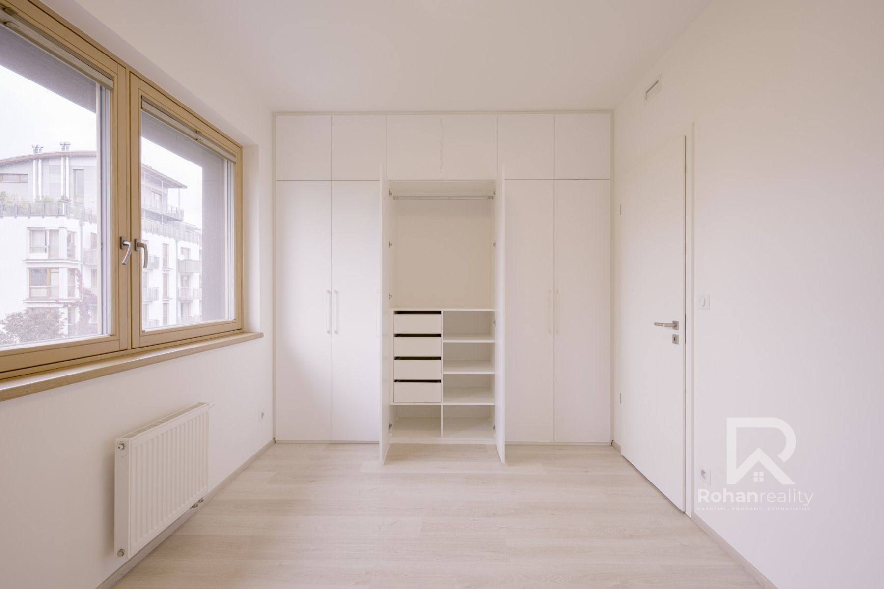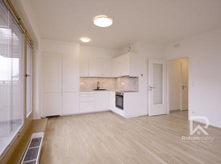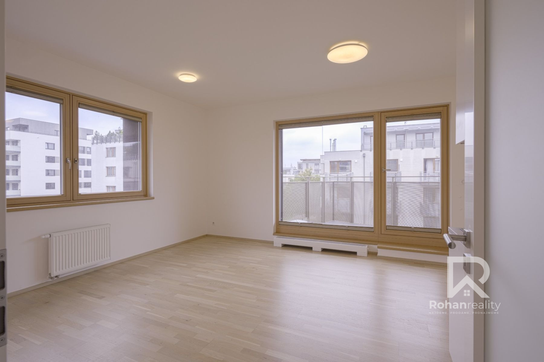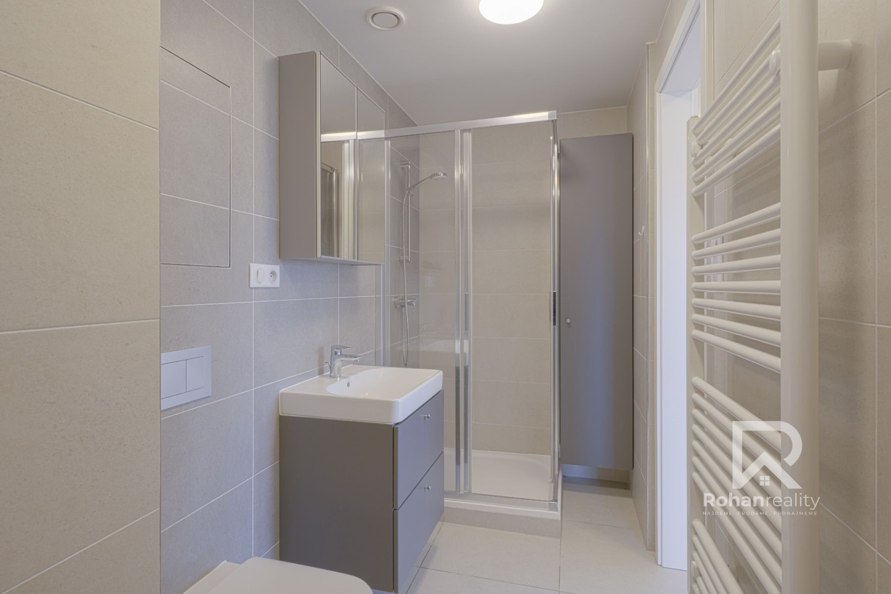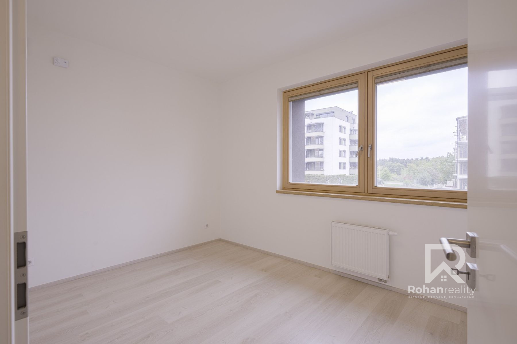 Nabízíme Vám k dlouhodobému pronájmu moderní byt 2+kk, 50,6 m² s balkonem 4,7 m² v oblíbené lokalitě Ecocity Malešice. Byt se nachází ve 3. patře cihlové novostavby z roku 2020 s výtahem. Velmi světlý obývací pokoj s kuchyňským koutem a vstupem na balkon je orientovaný mimo rušné ulice. Kuchyňská linka na míru je vybavena vestavnými spotřebiči (lednice s mrazákem, indukce, trouba, digestoř). Ložnice s výhledem do zeleně nabízí vestavěnou šatní skříň. Koupelna se sprchovým koutem, závěsným WC a přípravou na pračku. Byt má řízené větrání s rekuperací a venkovní žaluzie. K dispozici sklep 2,3 m² s regály. Možnost pronájmu garážového stání v suterénu (u výtahu) za 3 000 Kč/měs. Skvělá lokalita mezi Malešickým lesem a parkem – zeleň, sportoviště i hřiště v docházkové vzdálenosti, výborná dostupnost MHD: bus 3 min pěšky, večerka 2 min, les i park 3 min.