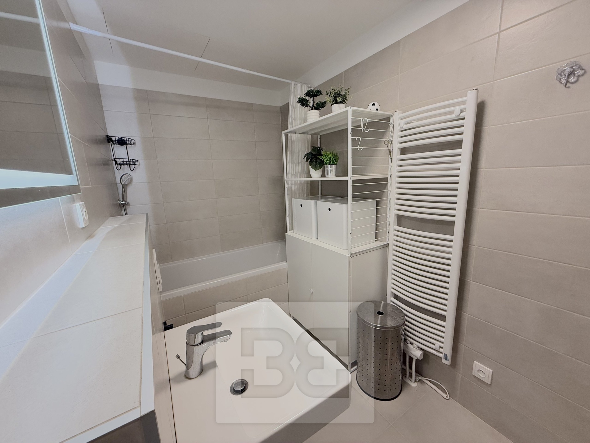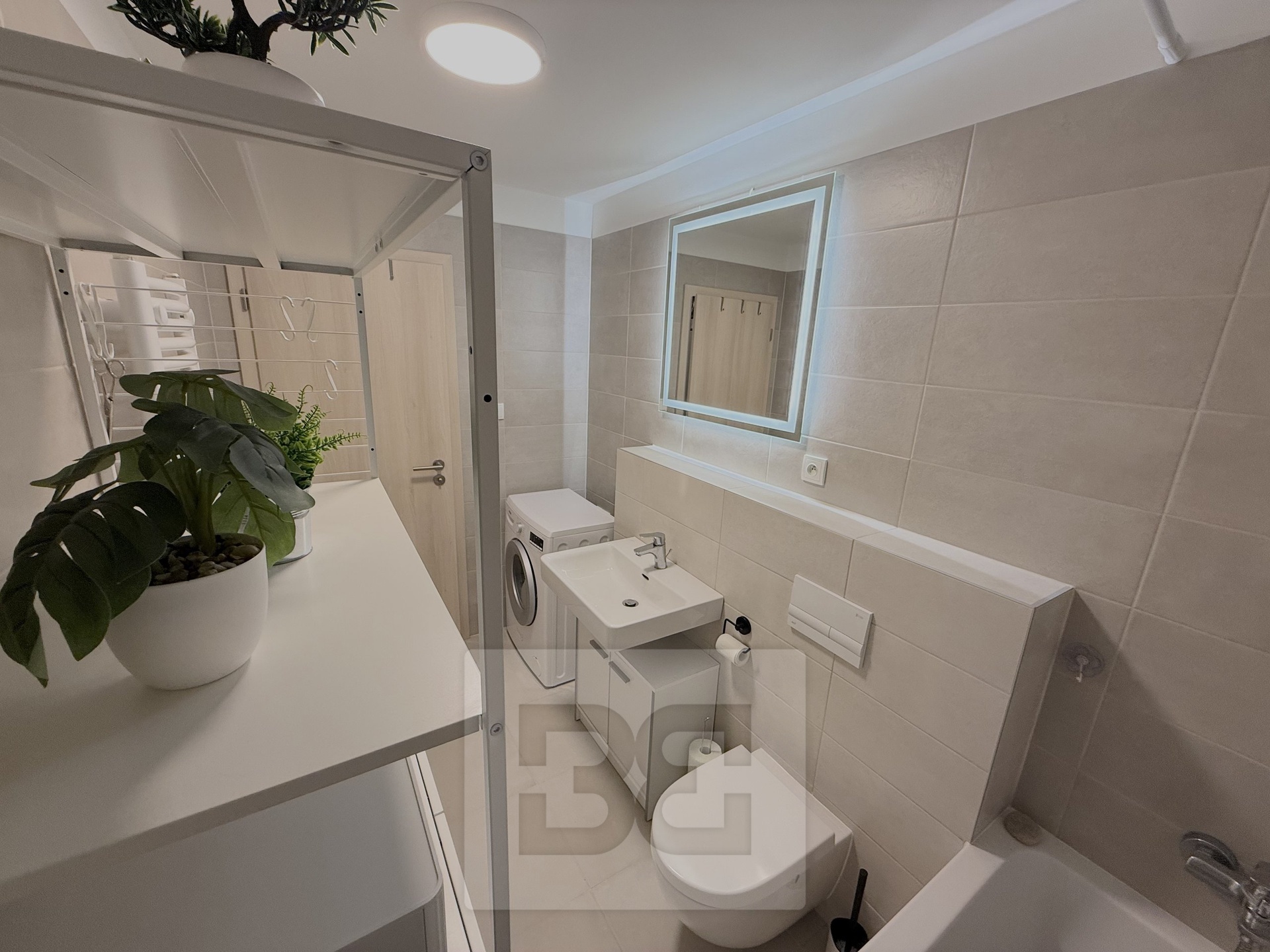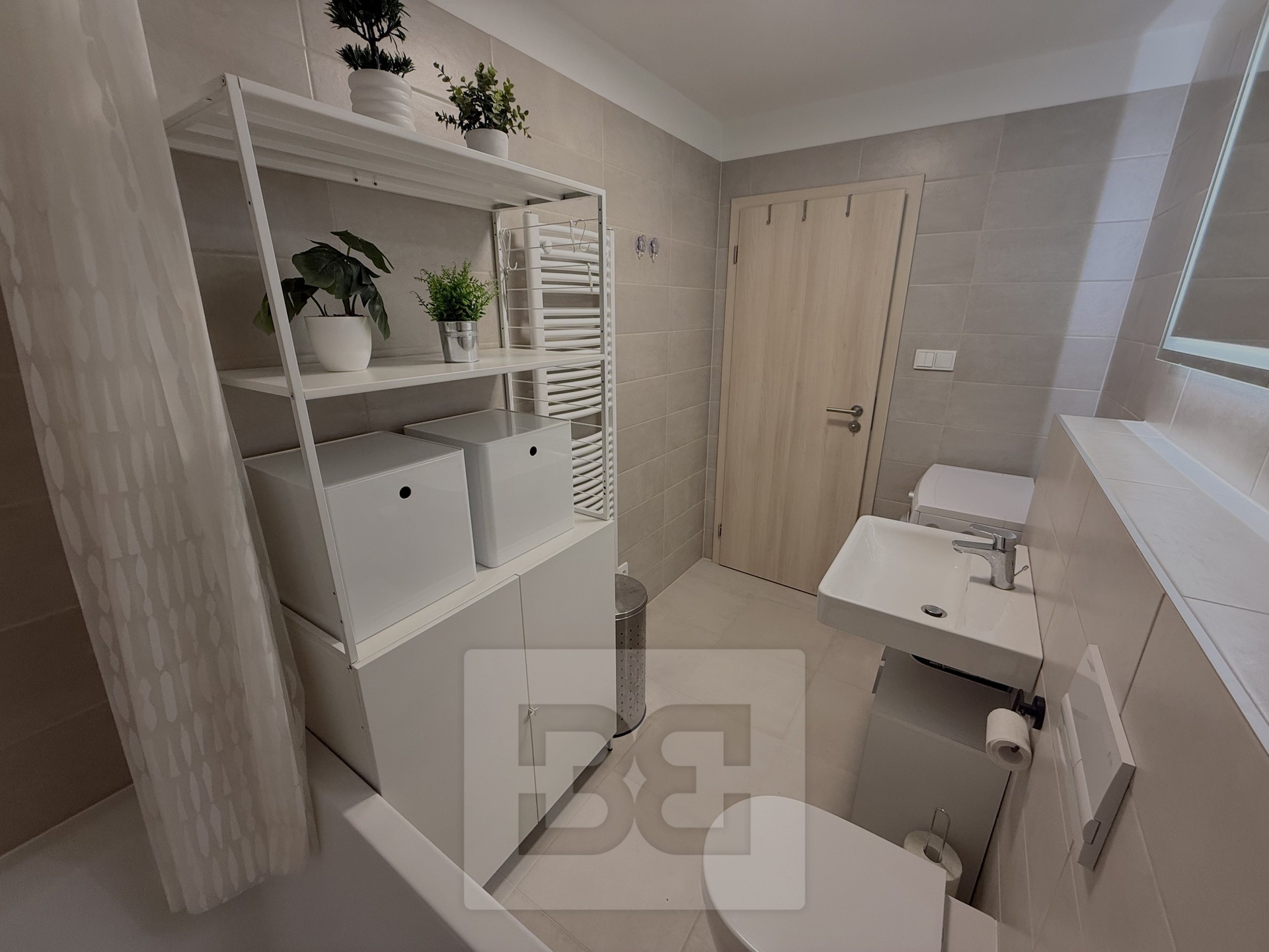 K nastěhování ihned. Nabízíme k pronájmu krásny, světlý byt 2+kk o velikosti 52m², situovaný v novostavbě v Modřanech. K dispozici je balkon, prostorná sklep a garážové parkovací stání. Dispozice bytu: • Vstupní předsíň s komodou a botníkem • Koupelna s vanou, toaletou, umyvadlem a pračkou • Obývací pokoj se vstupem na balkon • Kuchyňská linka je vybavena lednicí, elektrickou troubou, mikrovlnou troubou, myčkou a digestoří • Samostatná ložnice disponuje velkou šatní skříní a dvojpostelí • Součástí bytu je prostorný sklep a parkovací stání Lokalita: Byt se nachází v rychle se rozvíjející části Prahy - Modřany s výbornou občanskou vybaveností v okolí (obchody, služby, školy, MHD) a zároveň spoustou zeleně v dochozí vzdálenosti. Měsíční nájem činí 24500 Kč. Poplatky za služby 4400 Kč + elektrická energie. Vratná kauce 28900 Kč. Provize RK 28900 Kč + DPH. Pozor, velkou výhodou pro potenciální nájemce je, že byt je v profesionální správě společnosti Bohemian Estates, jenž správu pro majitele tohoto bytu vykonává. Nájemci je k dispozici kontaktní osoba, která řeší veškeré záležitosti s nájmem spojené (údržba, platby nájemného, vyúčtování, dodatky, a pod.). Nájemci je tak zajištěno bezproblémové užívání bytu s kompletním servisem.